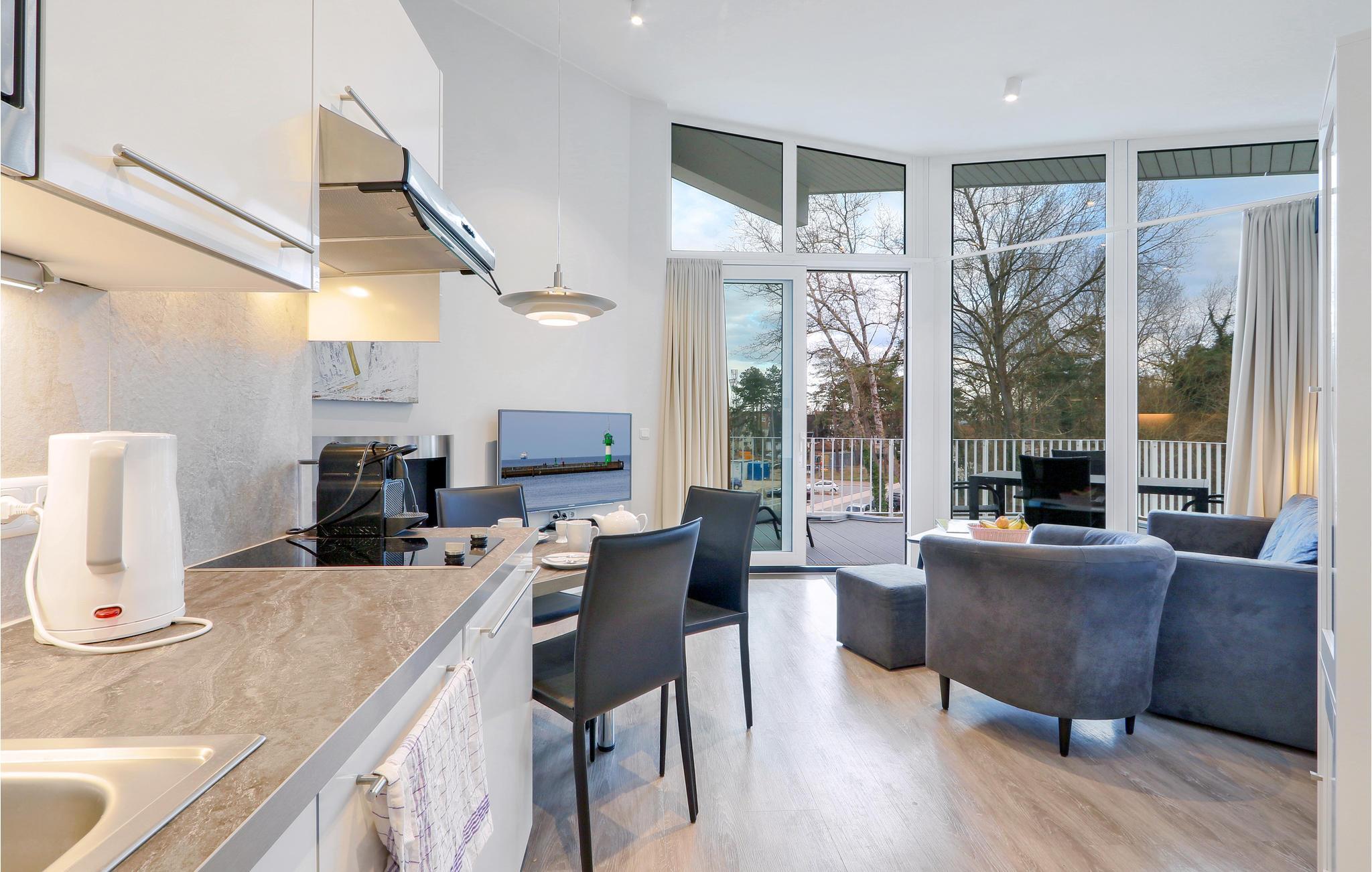 Modernes Penthouse in Travemünde BeachBay mit Dachterrasse, Dampfbad und Bio-Kamin für entspannte Strandtage.