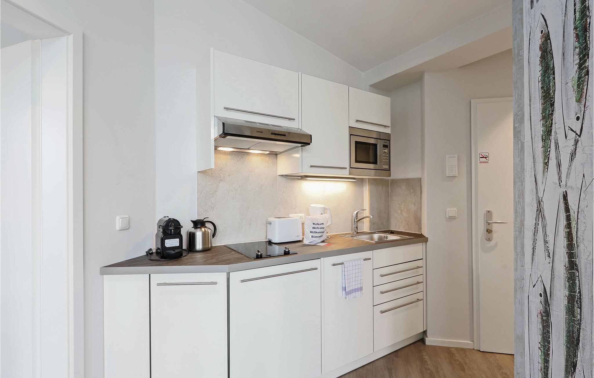 Das offene Badezimmer präsentiert sich Ihnen als privater Wellnessbereich mit Dampfbad und Doppelregendusche und ist über das Schlafzimmer zu erreichen. Entspannen Sie außerdem in der Sauna oder im Whirlpool. In der Küche finden Kaffeeliebhaber eine Nespresso-Maschine (Kapseln bitte selbst mitbringen), sowie Thermoskanne und Handfilter zum Selbstbrühen, falls Sie doch den klassischen Filterkaffee bevorzugen. Die Ferienwohnung verfügt außerdem über ein modernes Entertainmentsystem mit Blu-Ray-Player, zwei Flatscreen-TV und einer Musikanlage mit MP3-Anschluss.