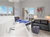 Ihr Penthouse ist hochwertig ausgestattet und überzeugt mit modernem Design. Das separate Schlafzimmer verfügt über ein gemütliches Doppelbett. Im Wohnbereich befinden sich zwei weitere Schlafplätze und Sie betreten von hier aus die großzügige Dachterrasse, das Highlight Ihrer Unterkunft. Genießen Sie den wunderschönen Blick über die Dünen und die Anlage. Vor dem Bio-Ethanolkamin können Sie es sich an regnerischen Tagen gemütlich machen.