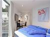 Die hell und modern gestaltete Ferienwohnung im 1. Obergeschoss verfügt über einen kombinierten Schlafraum mit gemütlichem Doppelbett sowie einer gut ausgestatteten Küchenzeile. Von hier aus gelangen Sie auf den kleinen Balkon. Hier können Sie einen herrlichen Blick in die angelegte Dünenlandschaft und die frische Seeluft genießen.