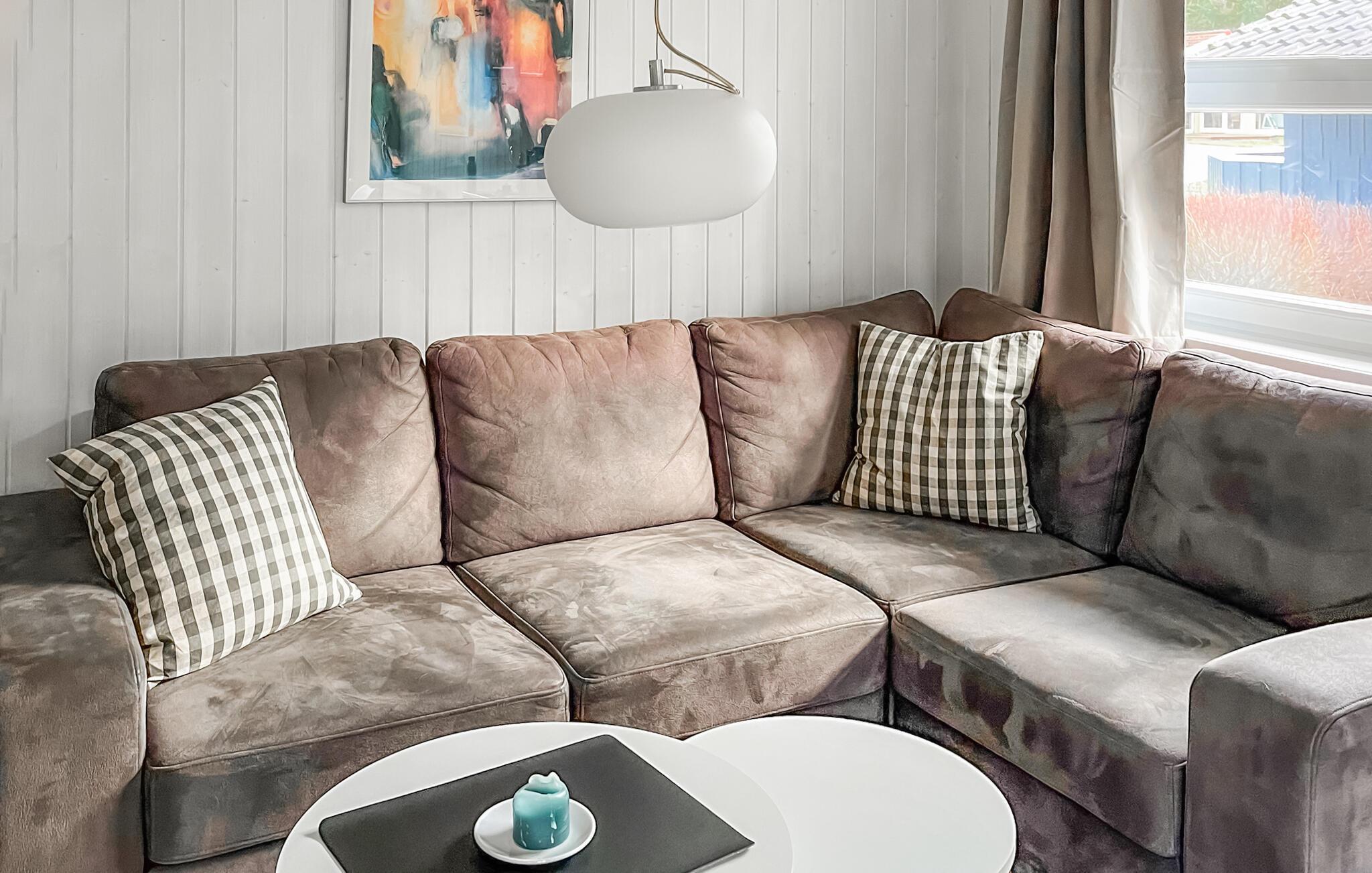 Im Wohnzimmer sorgt ein Kaminofen dafür, dass vor allem in der kalten Jahreszeit durch das prasselnde Feuer eine ganz besondere Atmosphäre gezaubert wird - und der Alltag erscheint bald ganz weit entfernt.