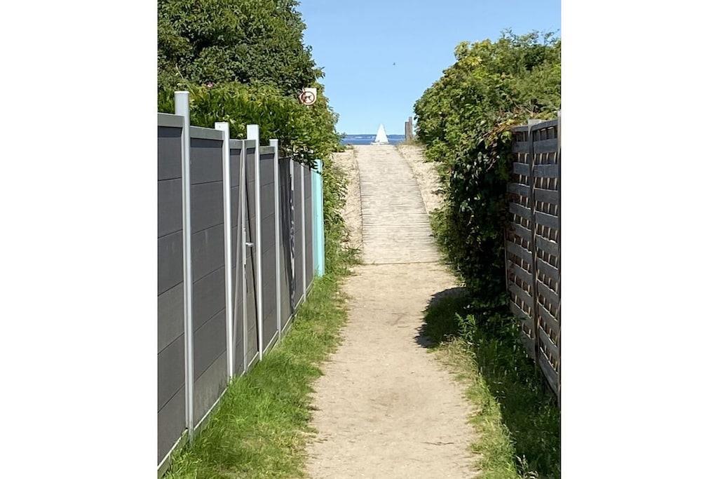 Sie betreten das 240 m² große eingezäunte Grundstück über das Doppelflügeltor – Strandhafer, Lavendel und Rosen umrahmen das gepflegte Objekt, das nach einem Eigentümerwechsel renoviert und vollständig neu möbliert wurde. Über die moderne Eingangstür mit Bullauge geht es in den kleinen Flur. Rechts befindet sich ein großzügiges Gäste-WC mit Waschtrockner. Links geht es in die offene moderne Küche mit Geschirrspülmaschine, Cerankochfeld, Backofen, Kühl-und Gefrierschrank und hochwertiger Ausstattung. Der offene Essbereich mit Holzesstisch und hellgrauen Loden/Holzstühlen ist durch die bodentiefen Fenster zur Terrasse lichtdurchflutet und im Winter durch einen Kaminofen zwischen dem Ess- und Wohnbereich kuschelig warm. Neben dem Essbereich schließt sich der Wohnbereich an, der auch vom Flur aus zugänglich ist. Ebenfalls mit bodentiefen Fenstern zur Terrasse gelegen hat man eher den Eindruck eines lichtdurchfluteten Wintergartens. Eine große graue Couch mit Schlaffunktion und Ottomane, viele Kissen und ein großer Flat Screen laden zu gemütlichen Abenden ein. Die vorgelagerte sehr große Terrasse verfügt über ein großes Ecksofa und einen modernen Hänge- bzw. Schaukelsessel. Ein Elektrogrill ist vorhanden und ebenso 2 Sonnenschirme und für die kleinen Gäste eine Kindersitzecke. Von der Terrasse oder auch über den Eingang gelangt man dann zur Liegewiese mit einem kleinen Gartenhäuschen. Vom Flur aus führt eine gerade gut zu begehende Treppe in den oberen Flur mit großem Einbauschrank. Rechts geht es in das Doppelschlafzimmer mit Bad en Suite. Das breite graue Boxspringbett und die weißen Kommoden sowie ein Flat TV laden zu gutem Schlaf ein. Das direkt vom Schlafzimmer zu betretende Badezimmer verfügt über eine Badewanne und ein separate Glasdusche. Vom Flur aus links geht es in das 2. Schlafzimmer mit 2 weissen Einzelbetten auch ideal als Kinderzimmer zu nutzen. Zwischen dem Bad und dem 2. Schlafzimmer liegt ein kleiner kuscheliger Raum mit zwei Sesseln und Tischchen für gemütliche Abende oder ein kleines Frühstück mit direktem Ostseeblick ! Das Haus ist mit seinem Farbkonzept weiss-grau-beige-anthrazit angenehm ruhig und modern ausgestattet, maritime Dekorationselemente vermitteln das Gefühl „Urlaub am Meer“. Im Seeweg und den umliegende Straßen herrscht Fahrverbot, nur zum Be- und Entladen dürfen hier PKWs genutzt werden. Das Beachhouse verfügt über einen eigenen festen Parkplatz auf dem Priwallhauptparkplatz (ca. 300 Meter) und Sie erhalten einen Schrankenschlüssel zum Be-und Entladen.