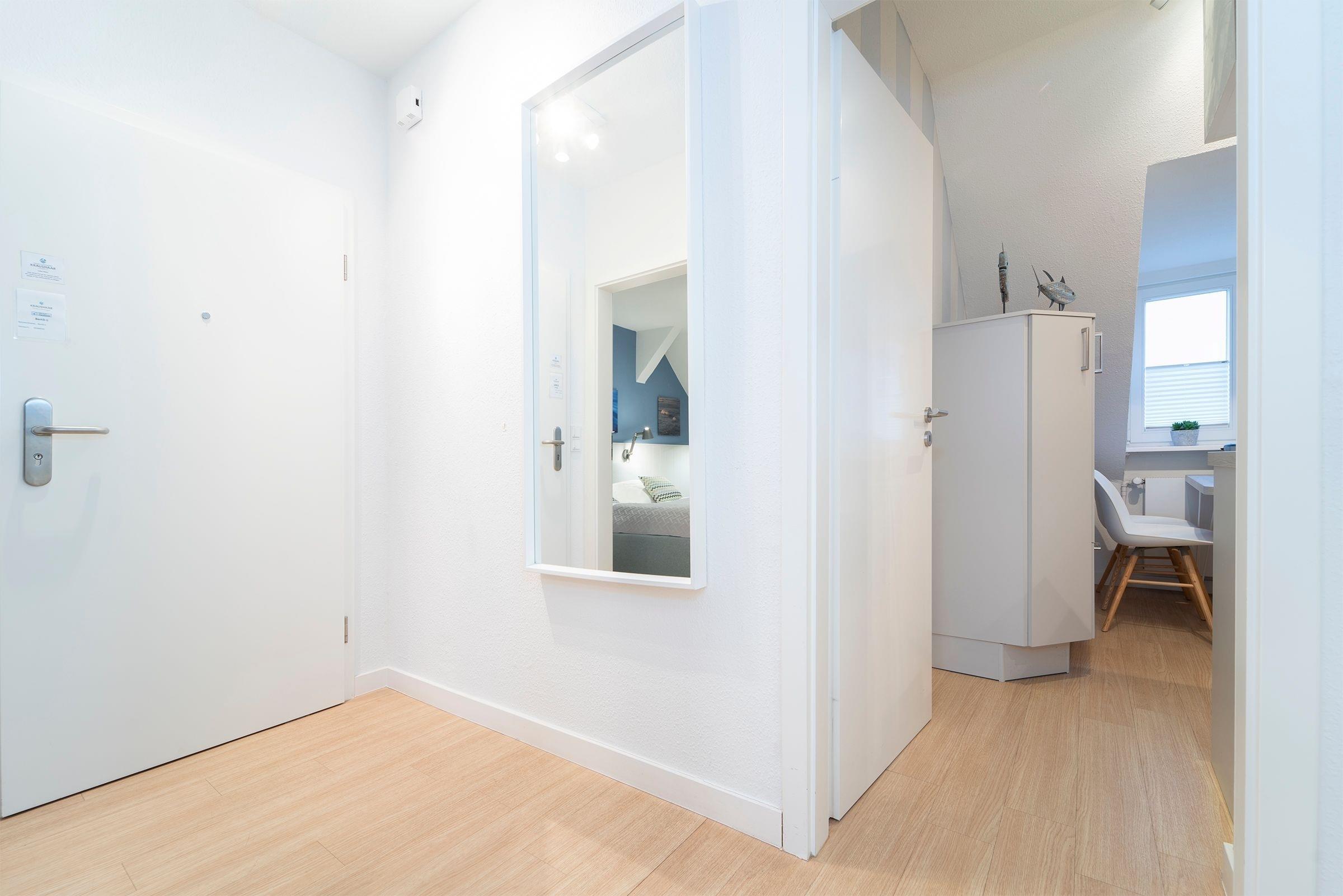 Schon das Treppenhaus verströmt den Flair dieser wunderschönen Immobilie. Mit betreten des Feriendomizils können Sie vom ersten Moment an den Alltag hinter sich lassen und sich endlich entspannen. Ein geräumiger Flur empfängt Sie.