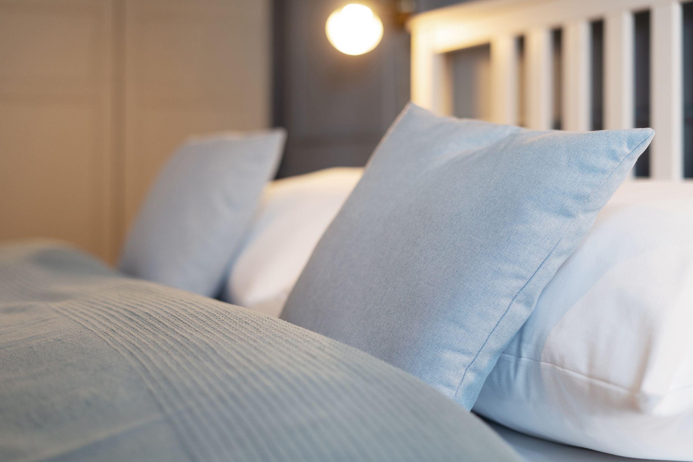 Schlafzimmer: 1 Doppelbett (2x 90x200 cm), Kleiderschrank, TV, Verdunkelung: Gardinen, Platz für ein Babybett vorhanden