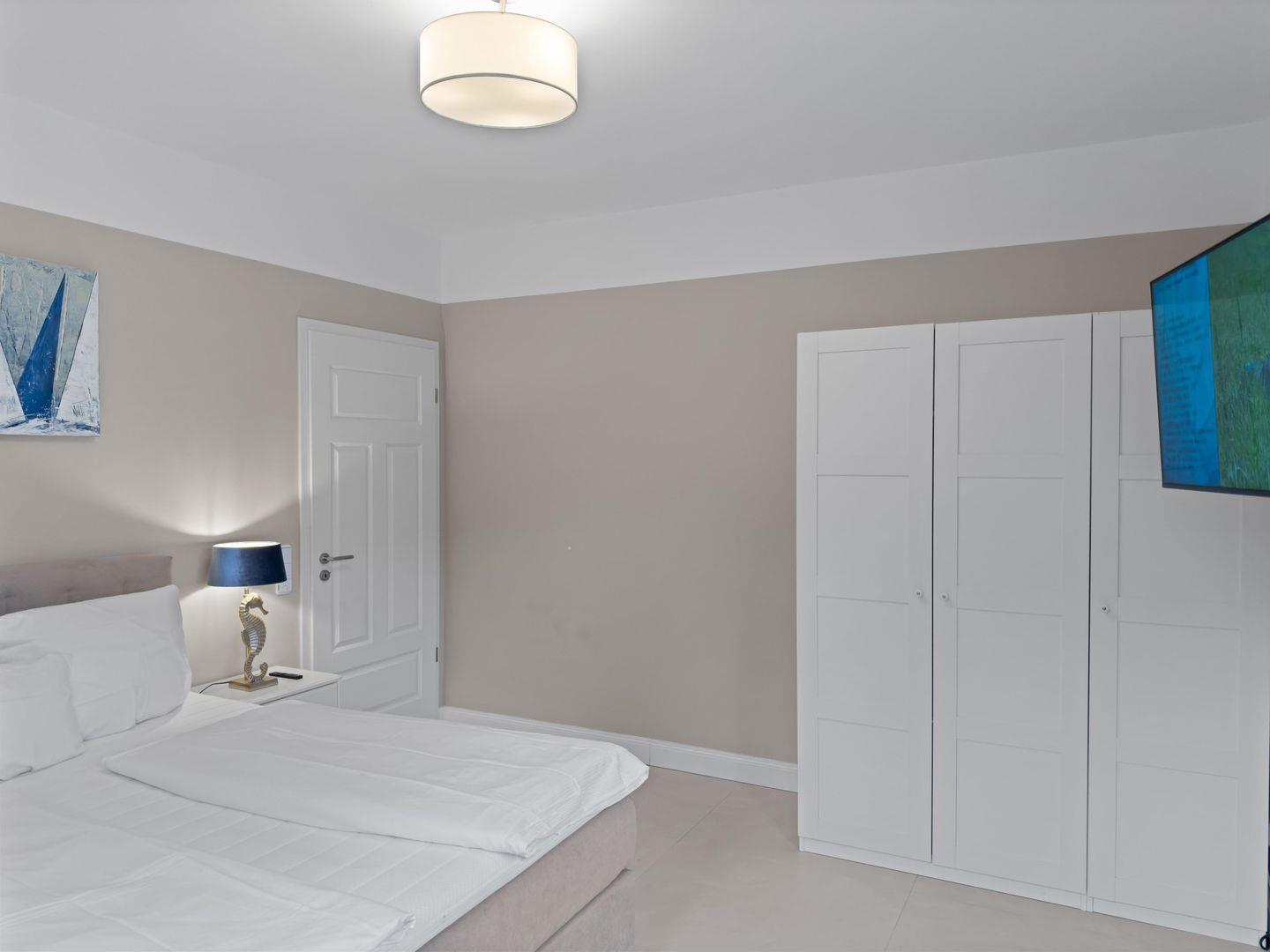 Dieses exklusive und moderne 3-Zimmer-Apartment im Erdgeschoss bietet auf ca. 100 m² großzügigen Wohnkomfort und liegt ideal am Godewindpark, nur wenige Gehminuten vom Strand entfernt. Die helle Wohnung verfügt über ein Vollbad mit Dusche und Badewanne, zwei Schlafzimmer mit Boxspringebetten. Der offene Wohnbereich mit hochwertiger Einbauküche und Kochinsel lädt zum gemeinsamen Kochen und Verweilen ein, während die möblierte Terrasse perfekt zum Entspannen im Freien ist. WLAN, TV, Waschmaschine und ein PKW-Stellplatz auf dem Grundstück sorgen für zusätzlichen Komfort.