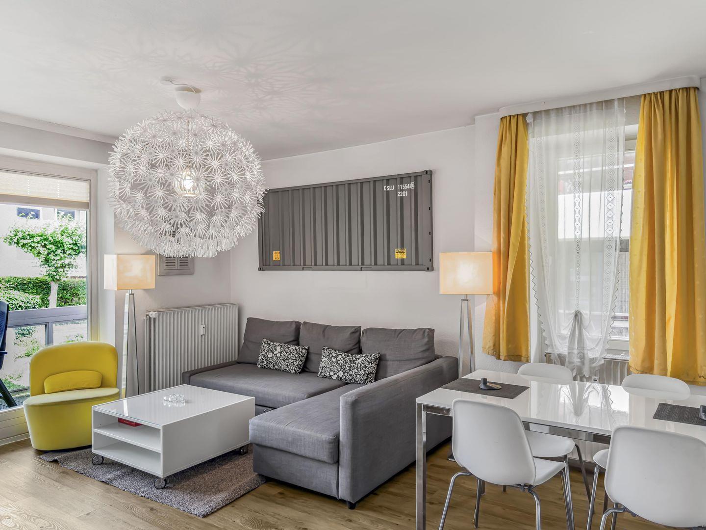 WLAN, TV und eine Musikanlage sorgen für Unterhaltung, und eine Gemeinschaftswaschküche ist gegen Gebühr im Haus verfügbar. Ein Tiefgaragenstellplatz ist vorhanden, jedoch nicht für große PKW geeignet.