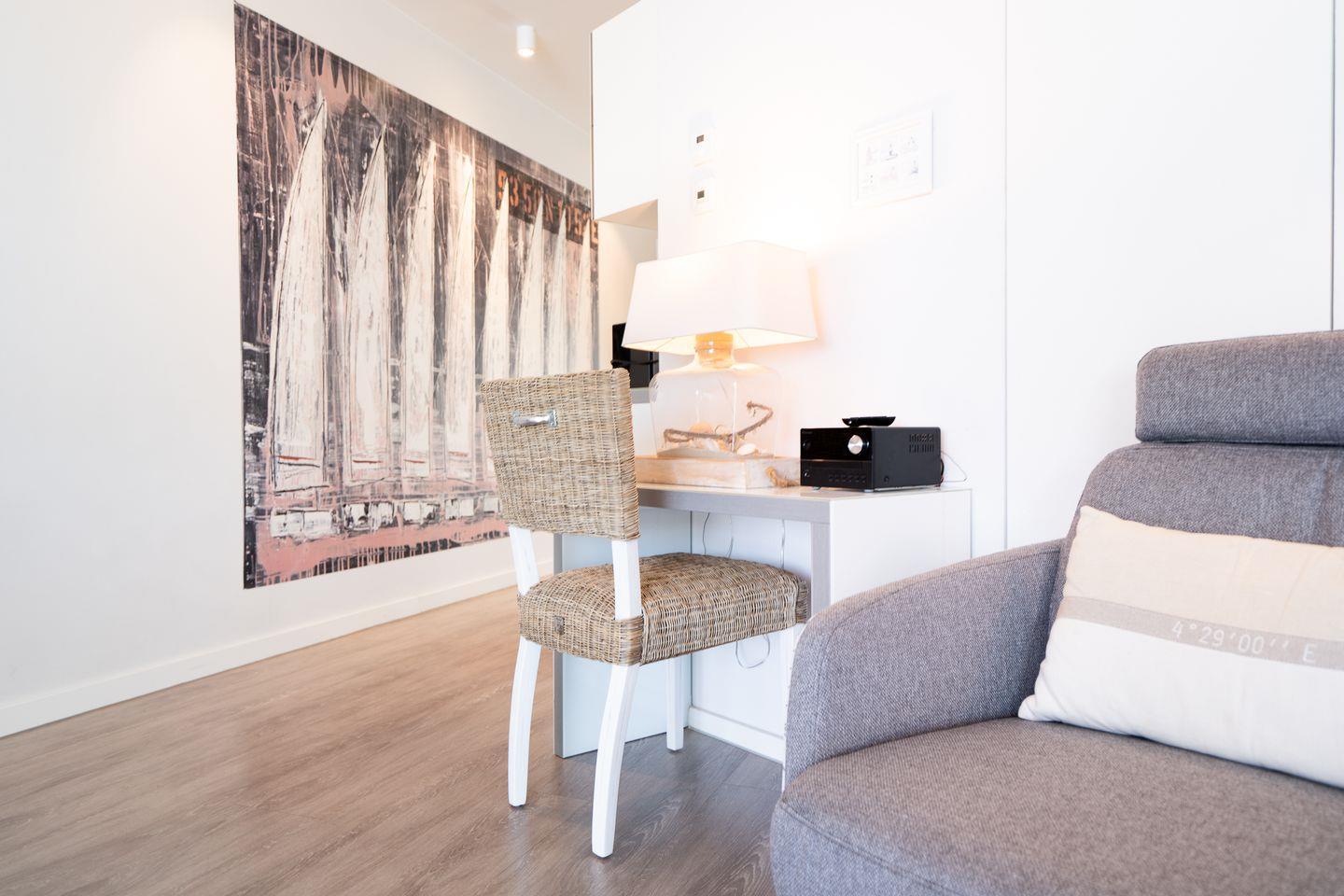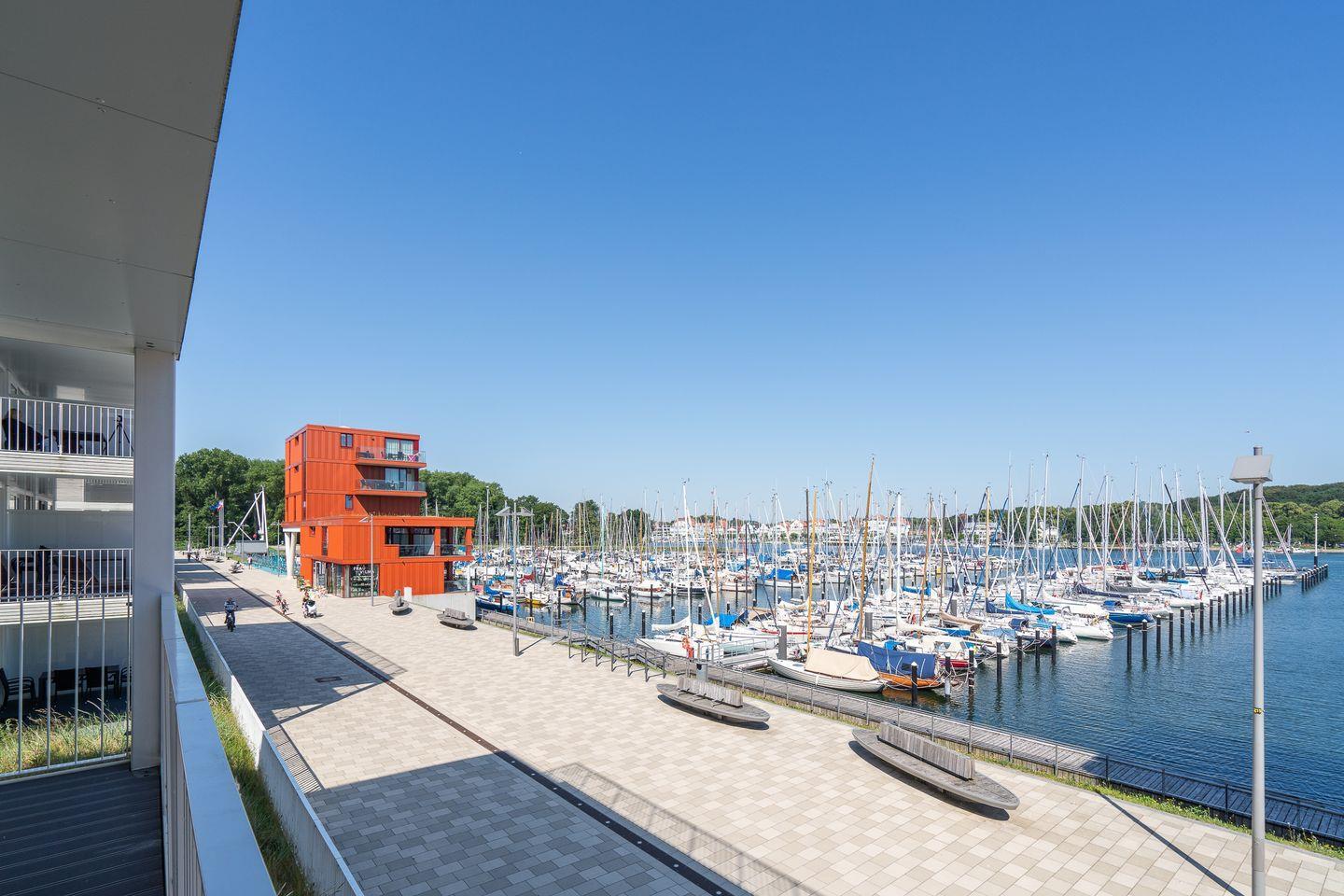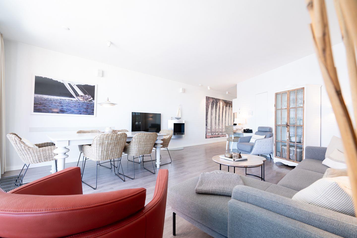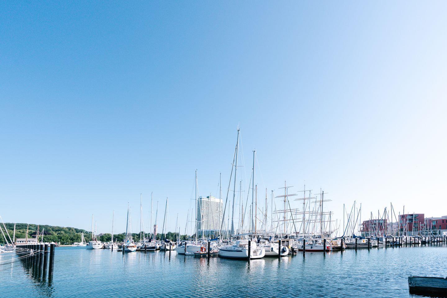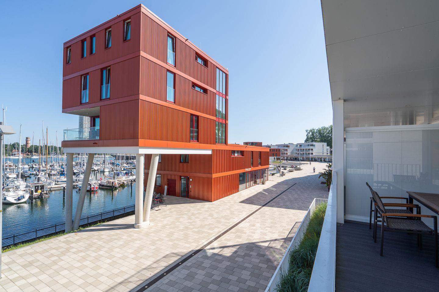 Erleben Sie Luxus und Entspannung in der modernen Ferienwohnung Hafenkino 23 direkt an der Ostsee mit Sauna und Meerblick.
