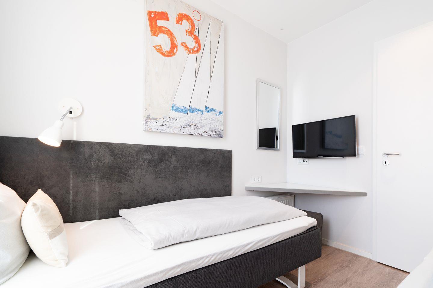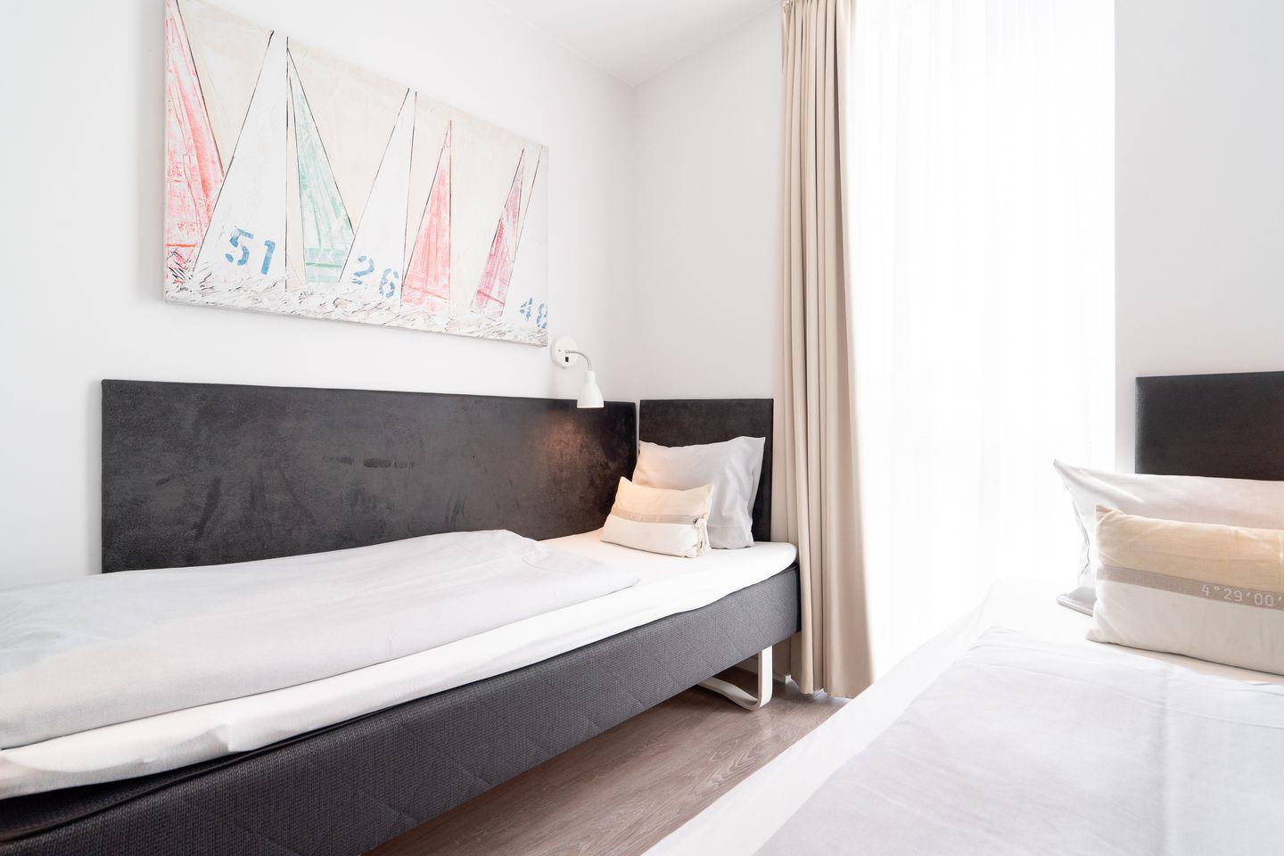 Eines der Schlafzimmer ist mit einem Boxspringbett (180x200) und das andere Schlafzimmer mit zwei Einzelbetten ausgestattet. Somit findet jeder den perfekten Schlafplatz für sich.