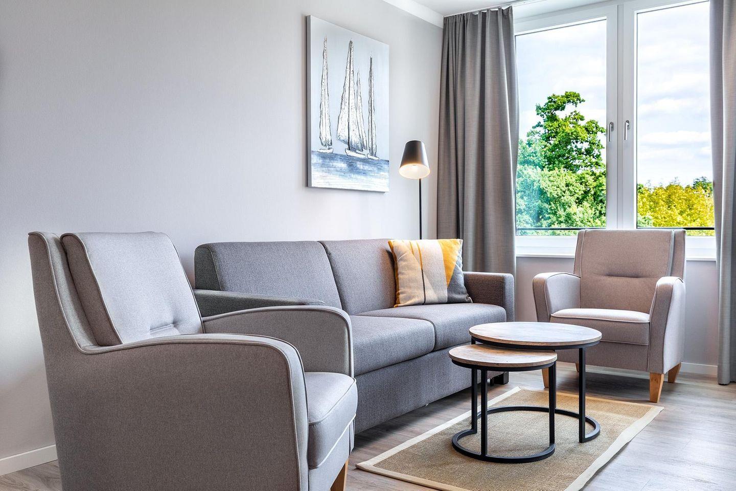 Modernes Apartment nahe Sandstrand mit Balkon, SPA und exklusivem Wellnessbereich in Travemünde.