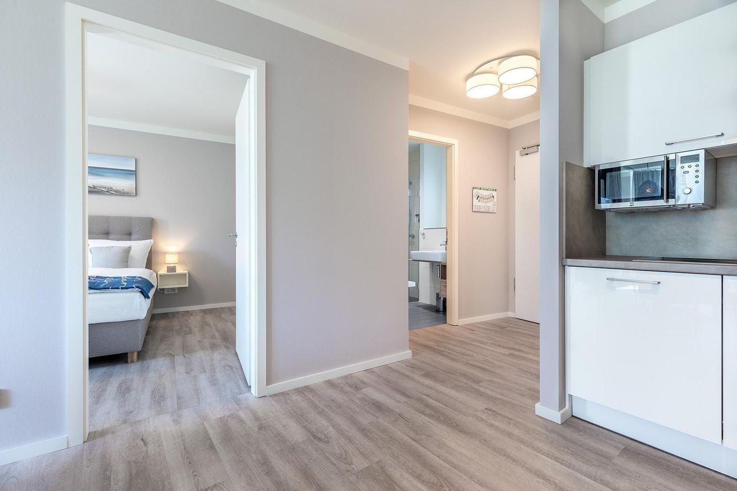 Modernes Apartment mit Balkon, Sauna und Strandnähe im Godewindpark Travemünde.