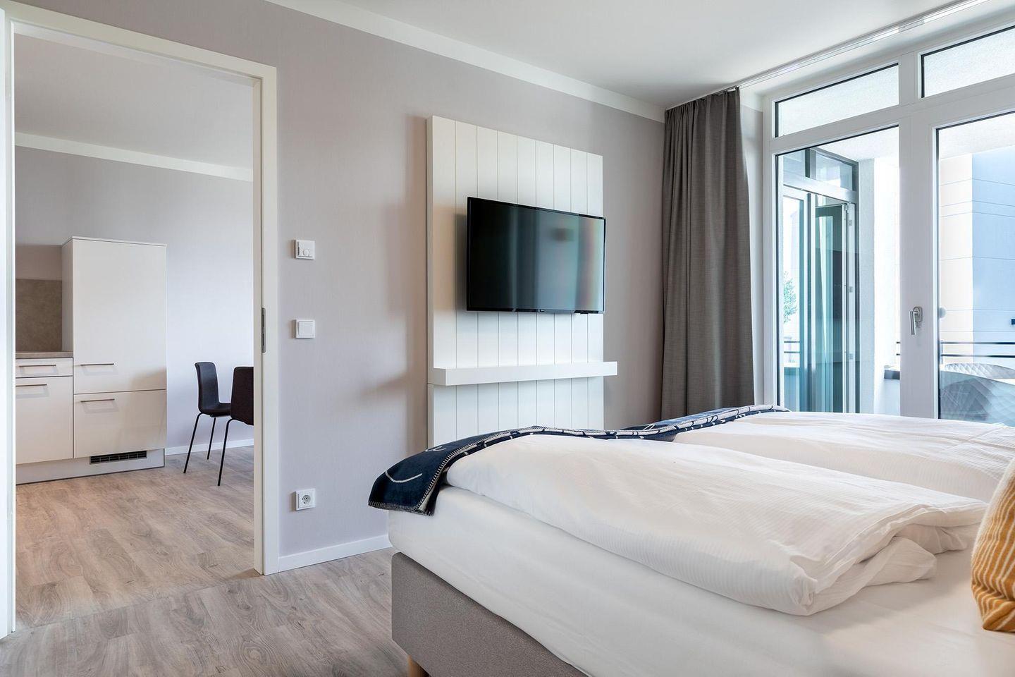 Modernes Apartment in Travemünde mit Sauna, Balkon und Strandnähe.