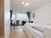 Im 14. Stock des Maritim in Travemünde erwartet Euch dieses moderne Appartement mit traumhaftem Panoramablick über Ostsee, Strand, Promenade und Trave. Der offene Wohn- und Schlafbereich verbindet stilvolles Design mit gemütlichem Wohngefühl – mit komfortablem Doppelbett, gemütlichen Sesseln, Flachbild-TV und Essplatz am Fenster. Die integrierte Küchenzeile ist praktisch ausgestattet mit Kochfeld, Mikrowelle, Kaffeemaschine und Wasserkocher. Das moderne Duschbad mit Handtuchtrockner sorgt für frische Urlaubsmomente. Ein echtes Highlight ist der Balkon mit Weitblick über die Ostsee – perfekt für Kaffee am Morgen oder den Sundowner am Abend. Ein PKW-Stellplatz in der Tiefgarage gehört ebenfalls dazu. Dank der direkten Lage an Strand und Promenade erreicht Ihr Cafés, Restaurants und Boutiquen in wenigen Schritten. Dieses Appartement ist der perfekte Ort für Eure Auszeit an der Lübecker Bucht.