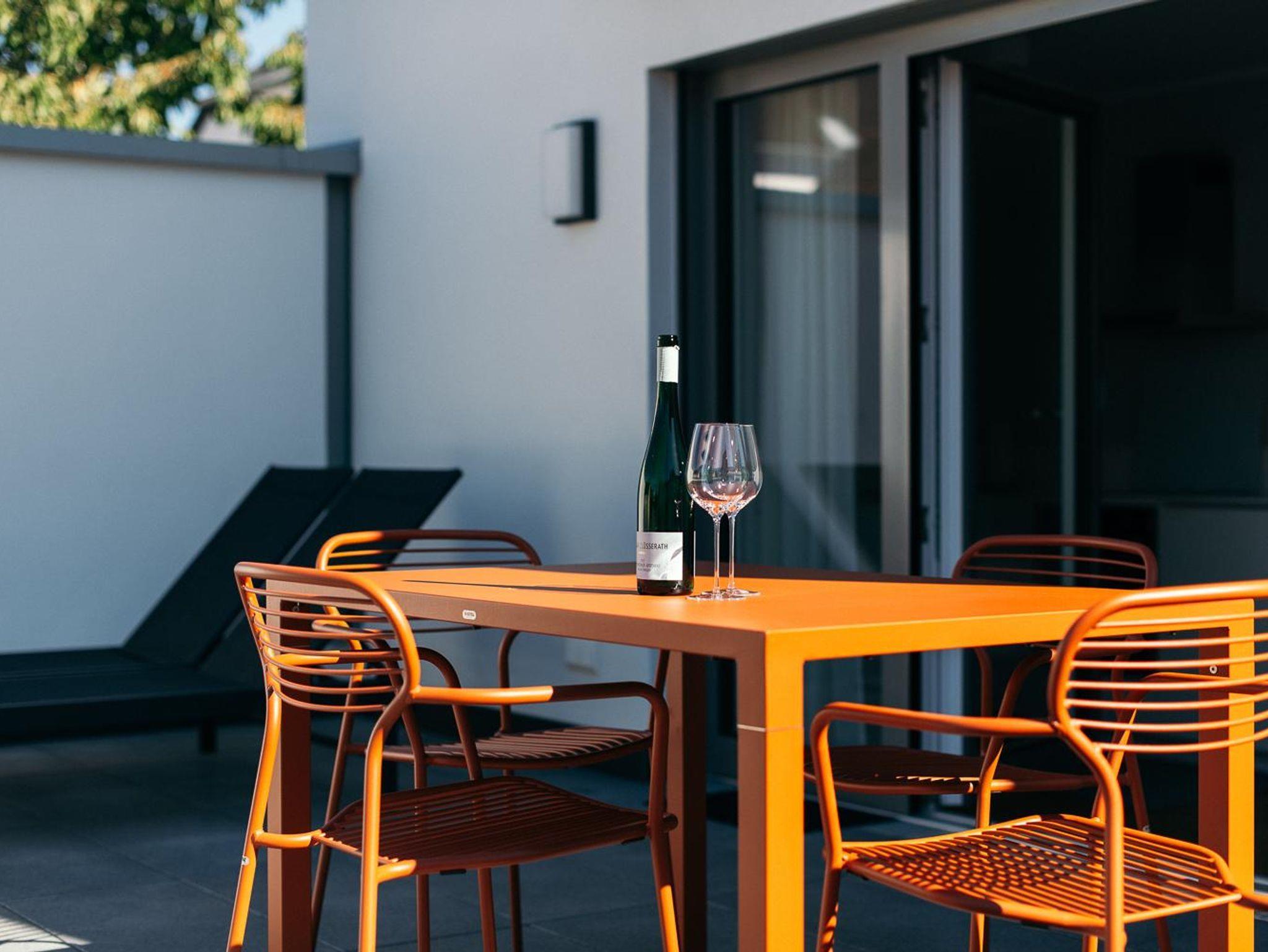 Jede der drei Wohnungen hat ihren eigenen Reiz. Nach einem erlebnisreichen Tag entspannen Sie auf der großen Terrasse mit Garten im Erdgeschoss oder beim Blick in die Steillage der Trittenheimer Apotheke aus dem Schlafzimmer im 1. und 2. Obergeschoss.