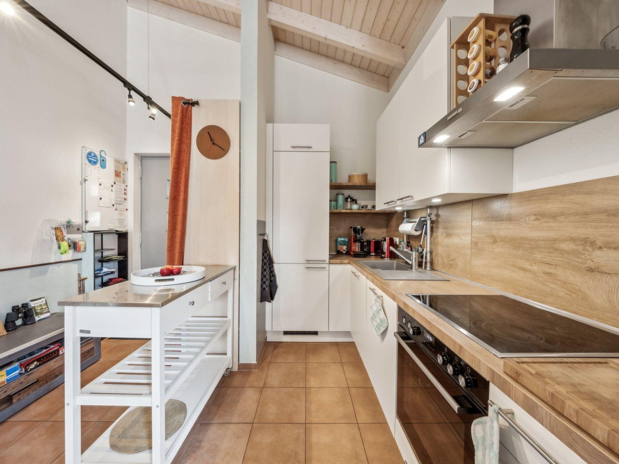 Innen besticht das 72 m² große, karminrote Holzhaus durch eine offene und zugleich gemütliche Gestaltung mit viel Luft nach oben – die hohen, kathedralenartigen Decken garantieren Kühle im Sommer. Genügend Wärme im Winter bescheren die diskret an den Decken aufgehängten Infrarotheizkörper. Der Wohnraum ist mit einem eleganten, dänische Kaminofen ausgestattet. Wohnraum und schicke Einbauküche bieten eine Einheit. Zwei komfortable Schlafzimmer bieten Platz für Ruhe und Rückzug, während das großzügige Badezimmer mit Badewanne und grosser, verglaster Duschkabine zum Entspannen einlädt. Barrierefrei, mit breiten Türen, ist jedes Zimmer problemlos erreichbar, was unsere Unterkunft auch für Menschen mit Assistenzbedarf ideal macht.
