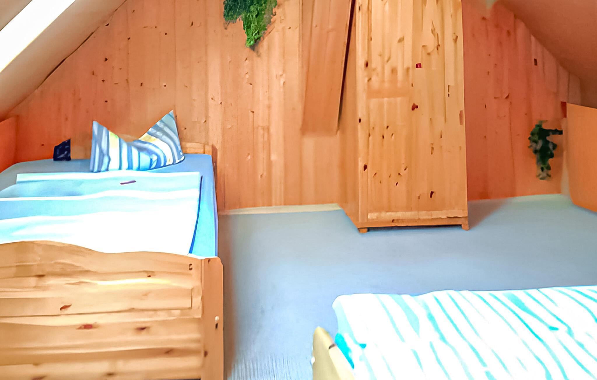 Schlafzimmer (nr. 1) - 1 Schlafmöglichkeit. (Einzelbett(en)). 2 Schlafmöglichkeiten. (Doppelbett(en)).