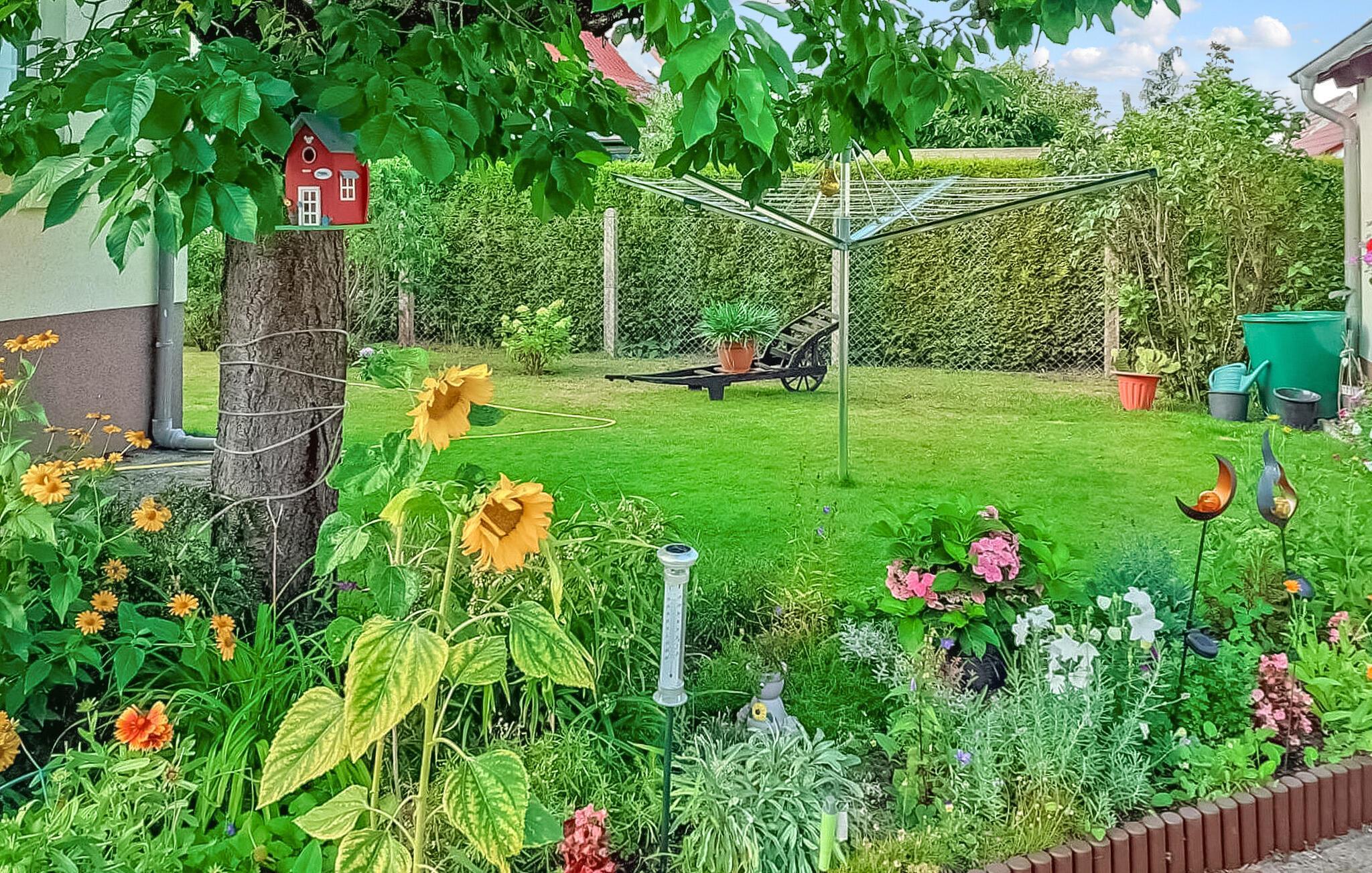 Gemütliches Ferienhaus in ruhiger Lage am Stettiner Haff, mit Terrasse, Garten und nur 600 m zum Badestrand.