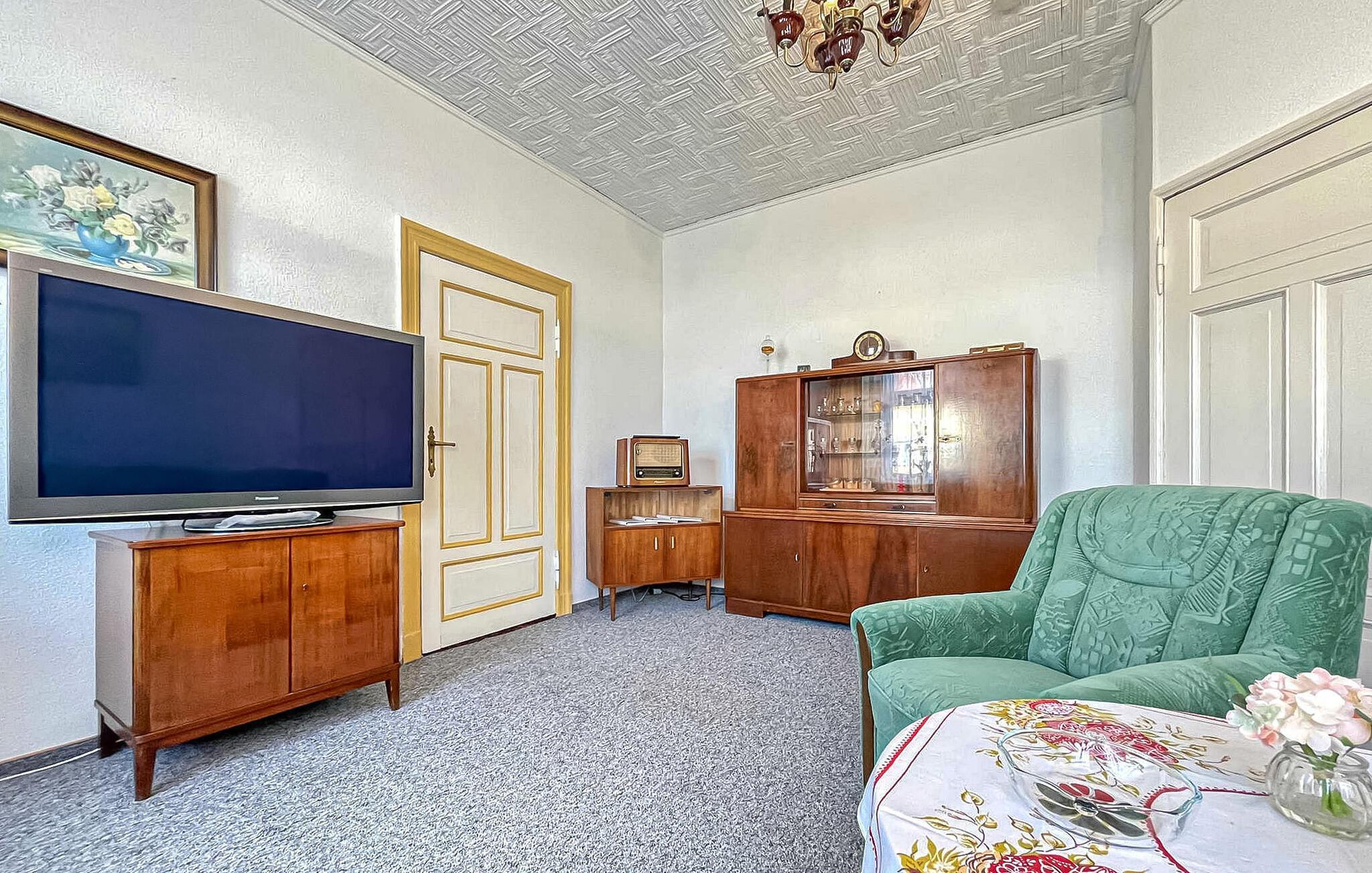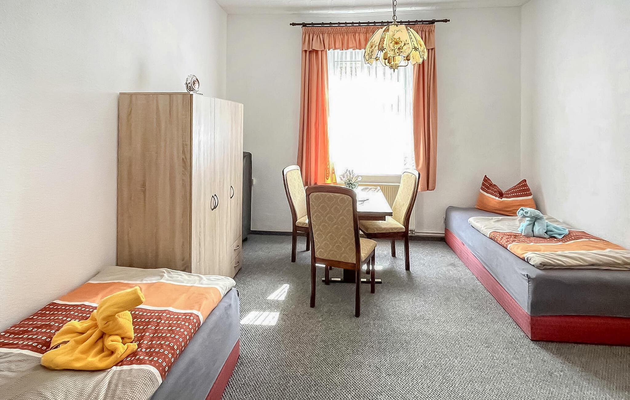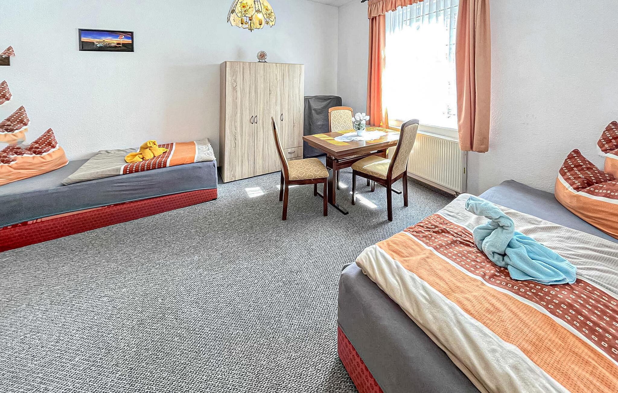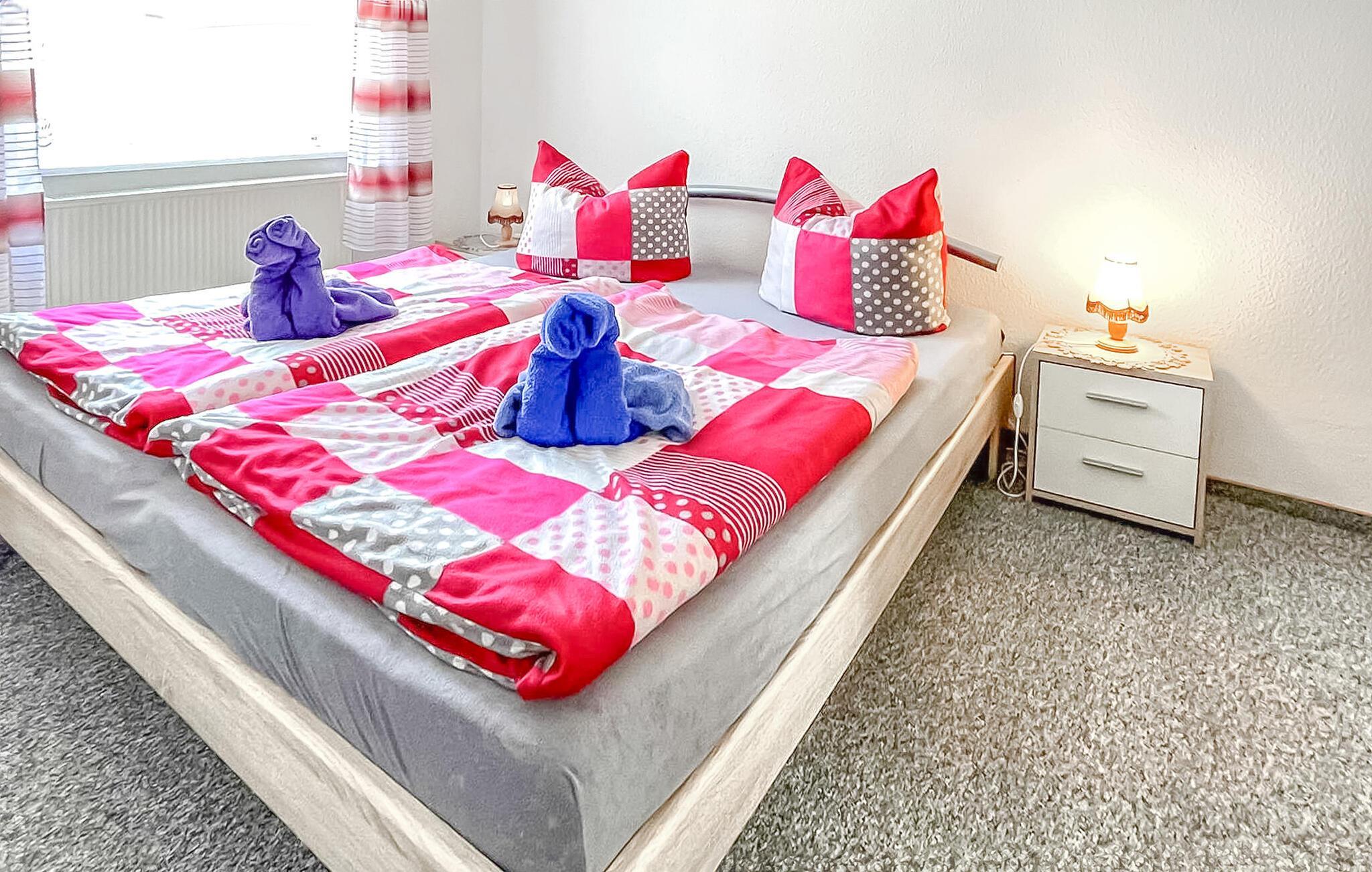 Ausstattung mit Wohnraum (Polster-Sitzecke mit Schlaffunktion, SAT-TV, Radio), zwei Schlafräume (Doppelbett bzw. 2 Polsterliegen, Gästebett zum Zustellen), große Küche mit kompletter Küchenzeile (E-Herd mit Backofen, Geschirrspüler, Kühl-Kombination, Essplatz, div. Küchengeräte), Bad mit Wanne und WC, Zentralheizung. Zur Verfügung stehen weiterhin kostenfreies W-LAN, eine überdachte Sitzecke im Freien, Holzkohlegrill, PKW-Stellplatz auf dem Grundstück, Kinderbett und Hochstuhl bei Bedarf sowie ein Fahrradabstellraum.