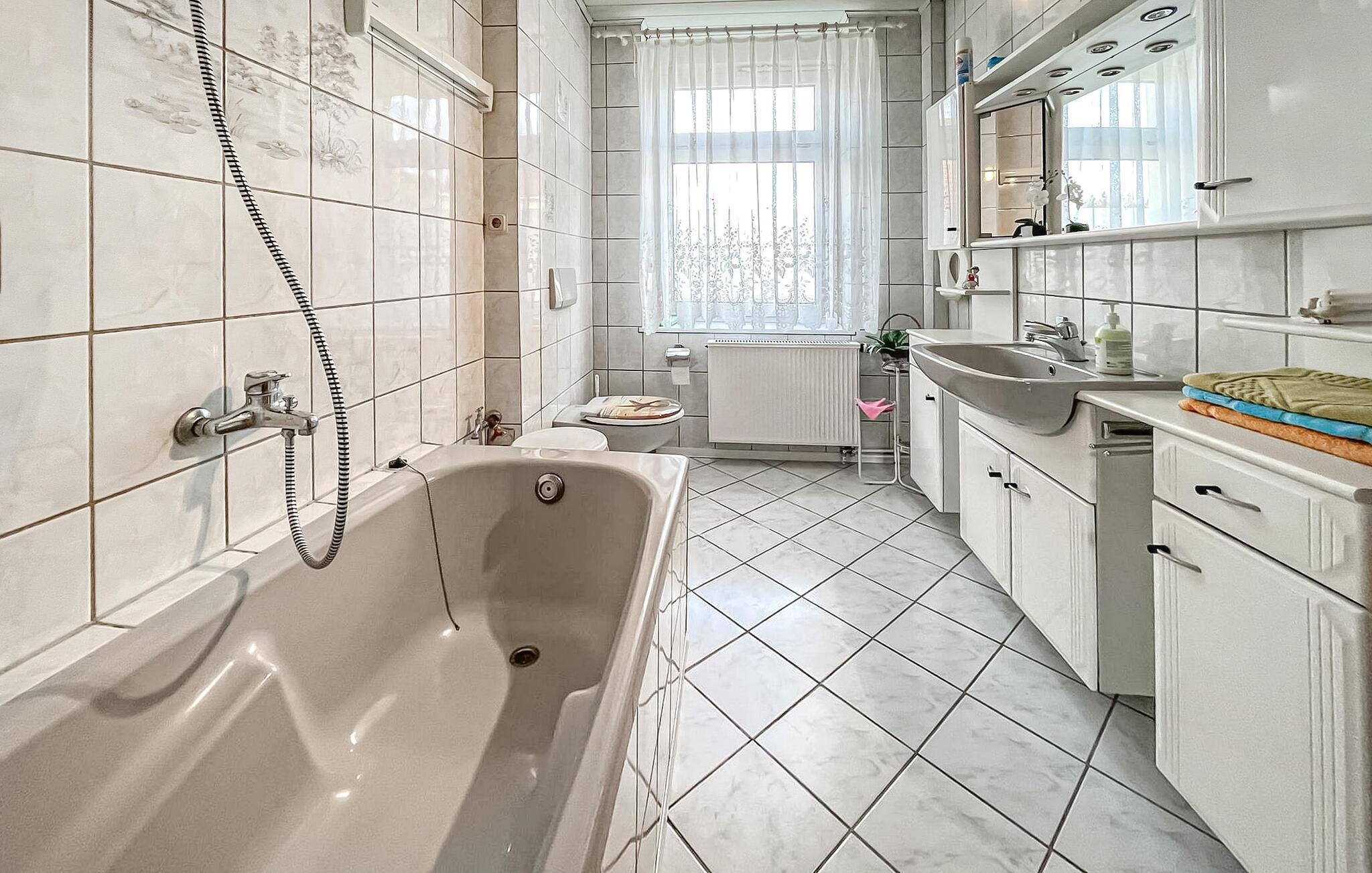 Badezimmer (nr. 1) - WC. Warmes und kaltes Wasser. Badewanne