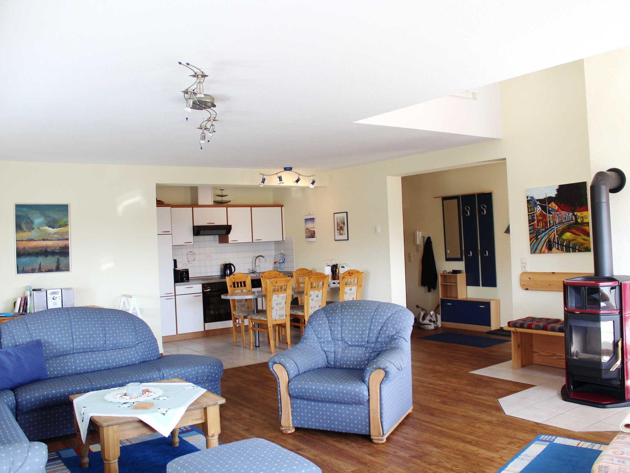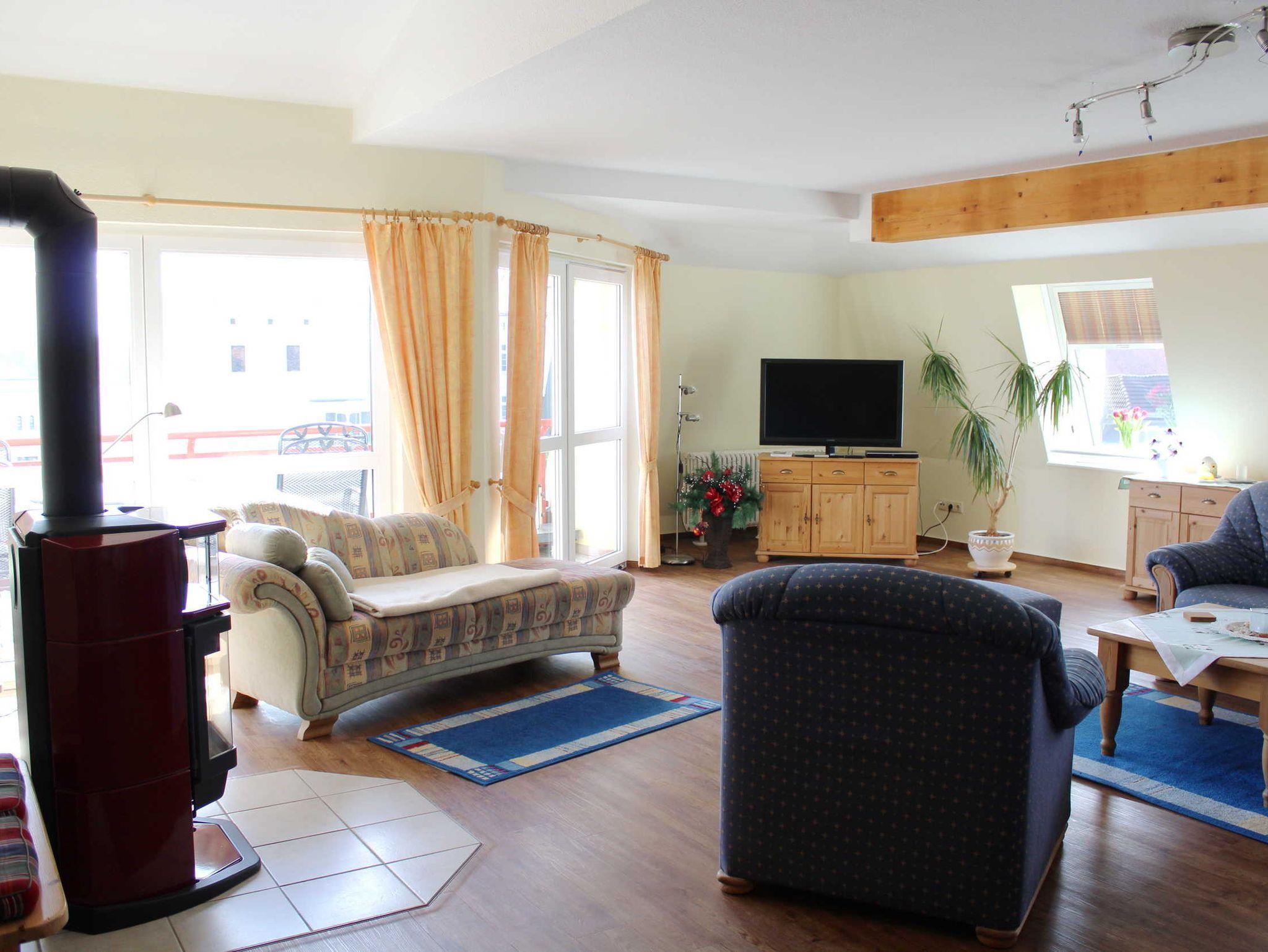 Große Penthouse-Anlage mit traumhaftem Ausblick auf das Schloß, die Kirche, die Ueckermünder Hafen und den Freizeitpark. Die Ferienwohnung besteht aus einem Wohnzimmer mit Kamin und großer Dachterrasse, einer offenen Küche mit Esstisch, einem Badezimmer mit Dusche und WC, einem Schlafzimmer mit Doppelbett und einem weiteren Schlafzimmer mit zwei Einzelbetten. Ausgestattet mit TV/Radio und Kamin. Haustiere sind nicht erlaubt. Nichtraucher! Bettwäsche und Handtücher können dazu gebucht werden! ACHTUNG - Kinder erst ab 4 Jahren möglich!