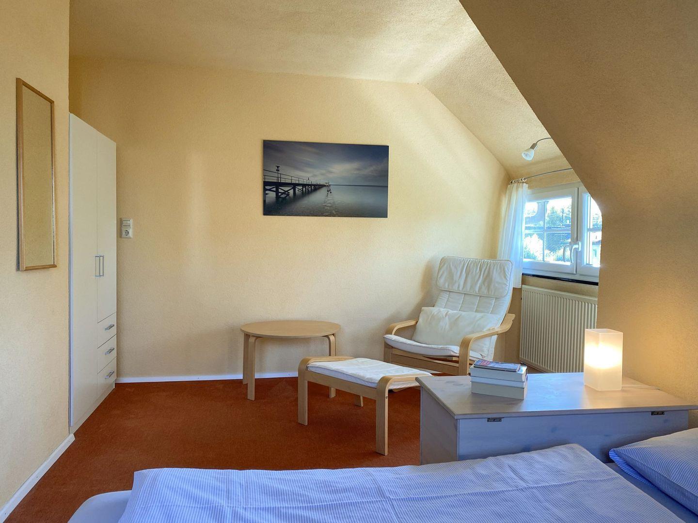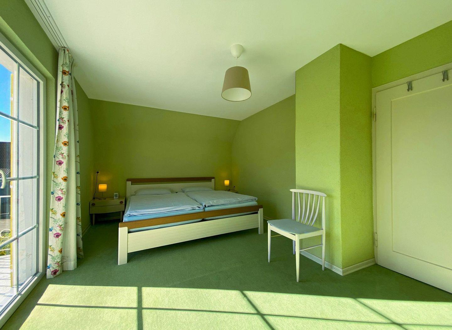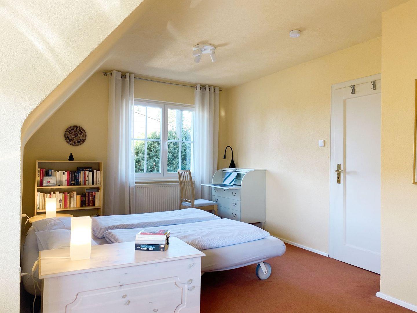 Kinder ab 6 Jahre freuen sich über das Dachgeschoss als Schlafplatz und Rückzugsort (mit zwei Einzelbetten, ACHTUNG steile Treppe).