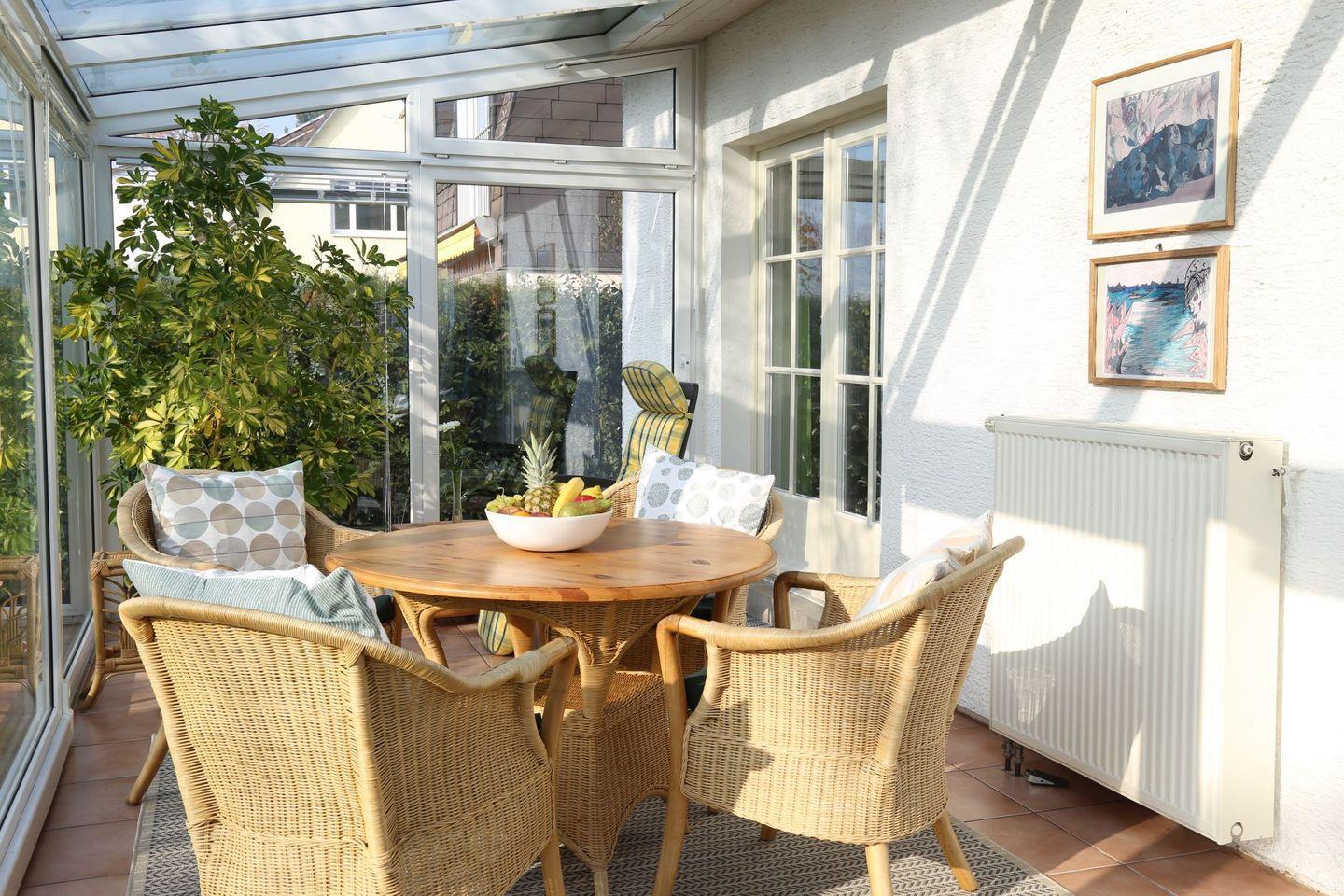 Der großzügige Garten erstreckt sich rund ums Haus und lädt zum Verweilen ein. Die ruhige Wohngegend verspricht wohltuende Erholung. Die Früchte der Obstbäume im Garten warten auf Ihre Ernte und bereichern Ihren Frühstückstisch. Nur wenige Gehminuten entfernt liegt der glitzernde Bodensee, der Sie zu erfrischenden Badestunden einlädt.