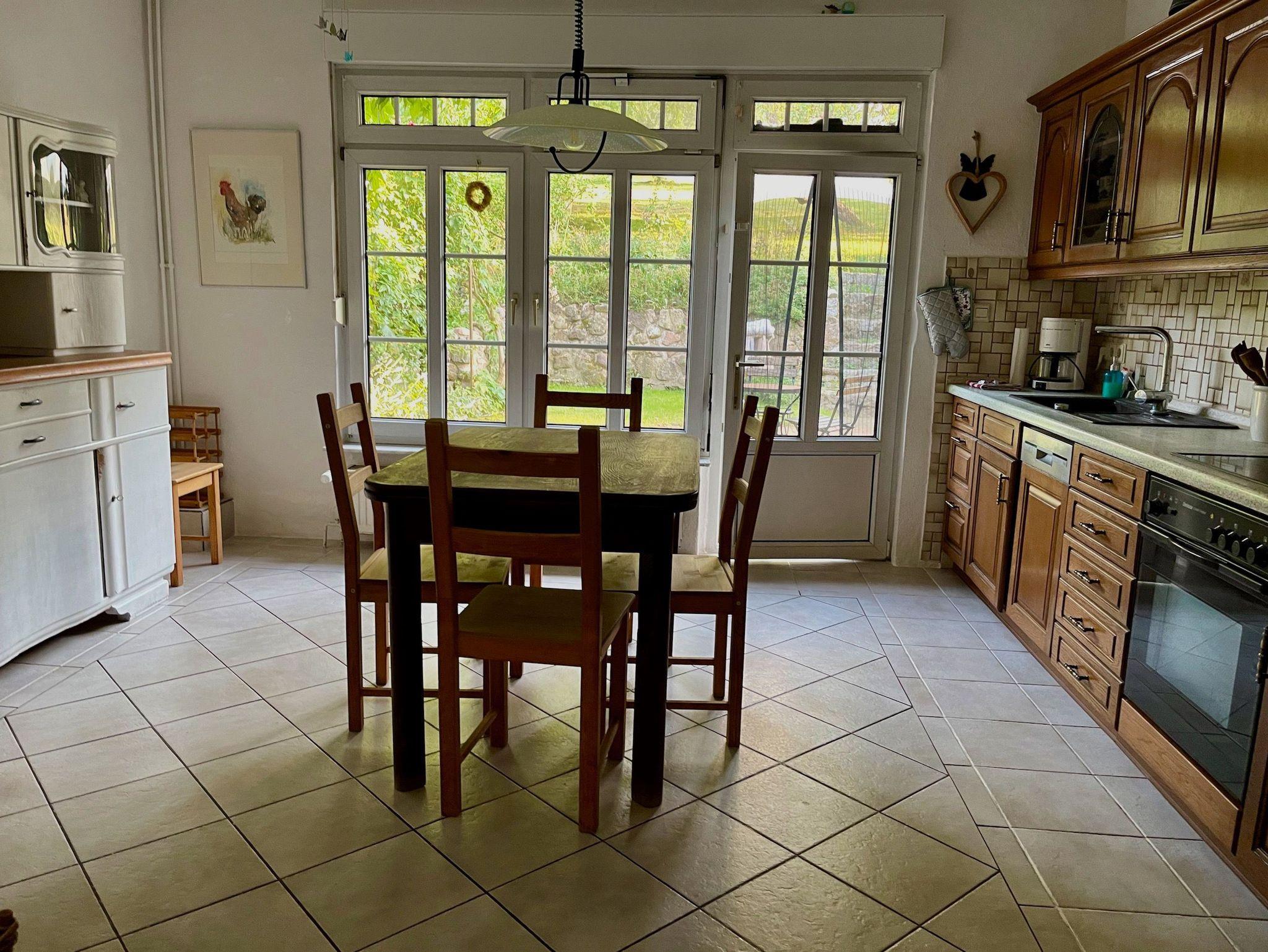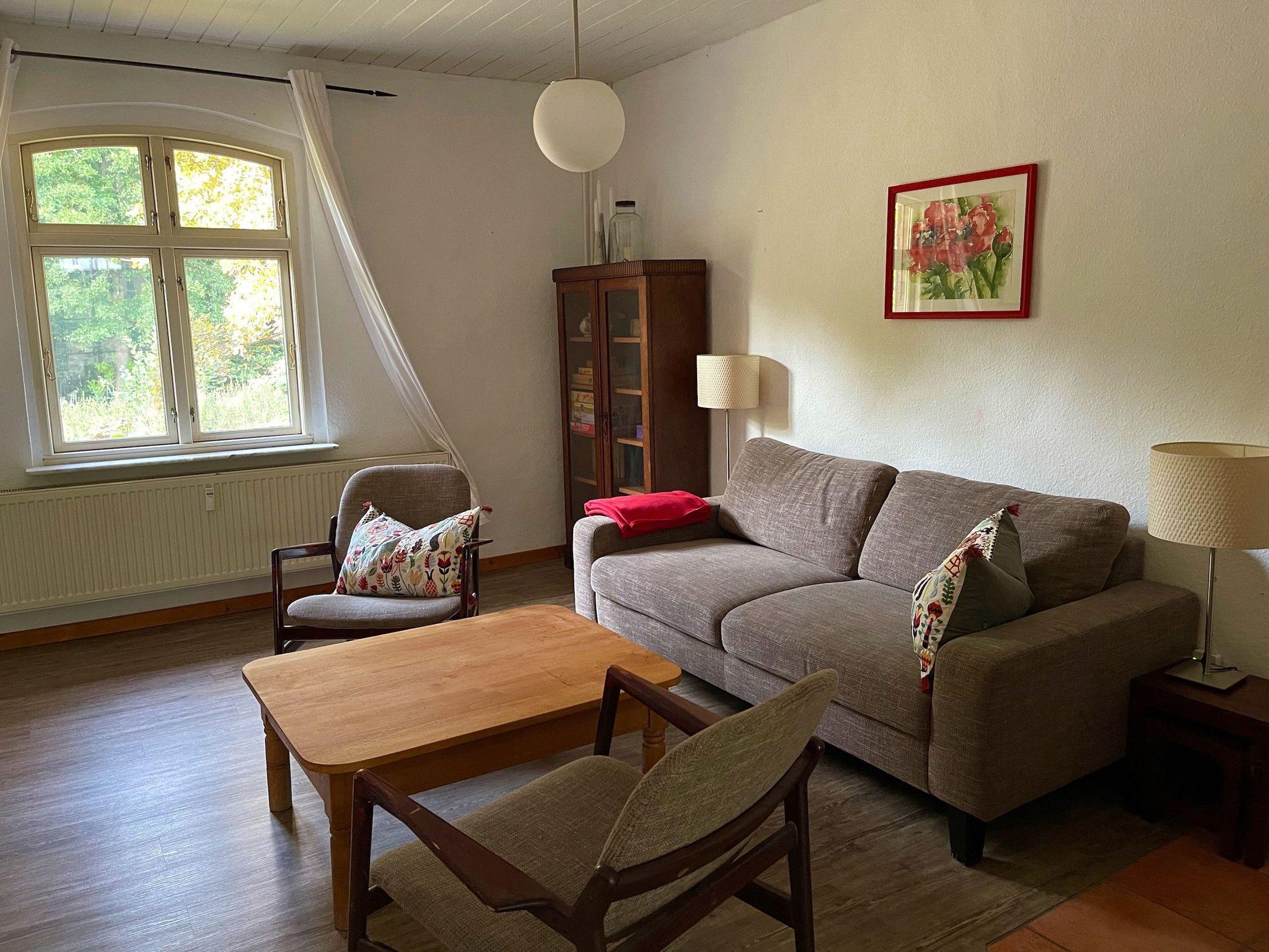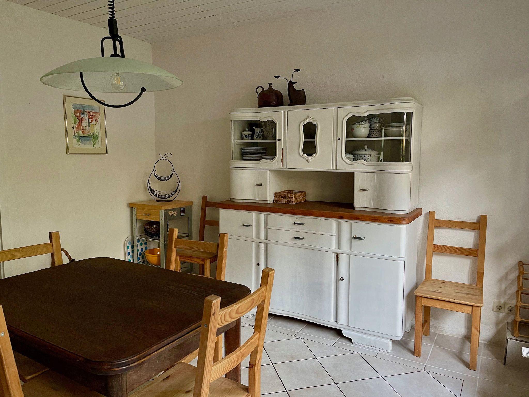 An der Südseite der Wohnung gibt es einen kleinen Garten mit Gartenmöbeln und Grill. Hier finden Sie auch Gartenkräuter, die Sie gerne ernten dürfen. Zum Haus gehört ein großzügiges Gelände mit neu angelegter Streuobstwiese und Wildhecken. Hier können Ihre Kinder ungestört spielen.