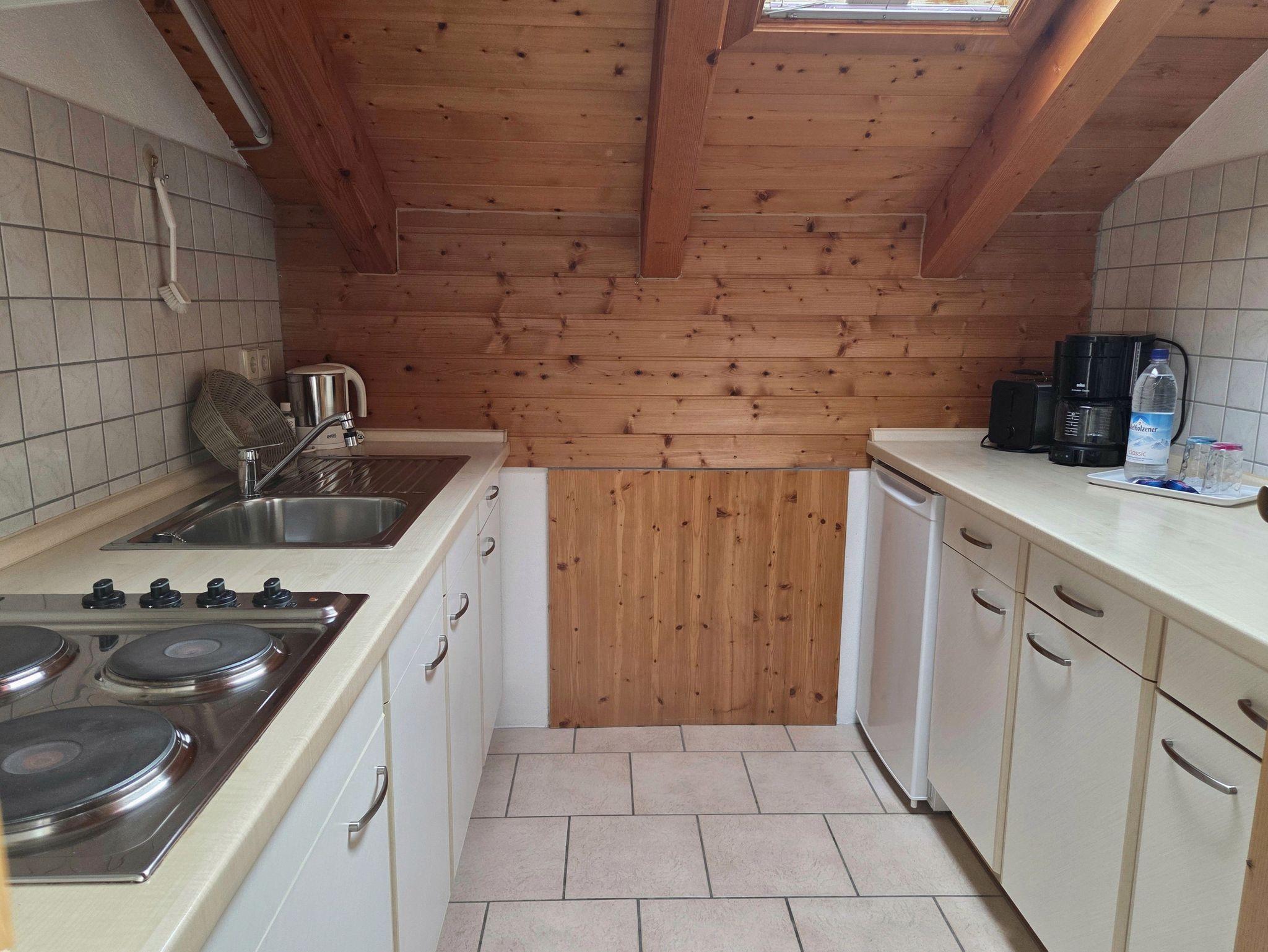 Küche separat voll ausgestattet, Mikrowelle, Toaster, Wasserbereiter, Kaffeemaschine, Geschirr, 4 Platten Herd,