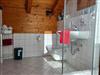 Tageslicht Badezimmer mit Dusche und WC, Haarfön, Toilettenartikel und Pantoffel,