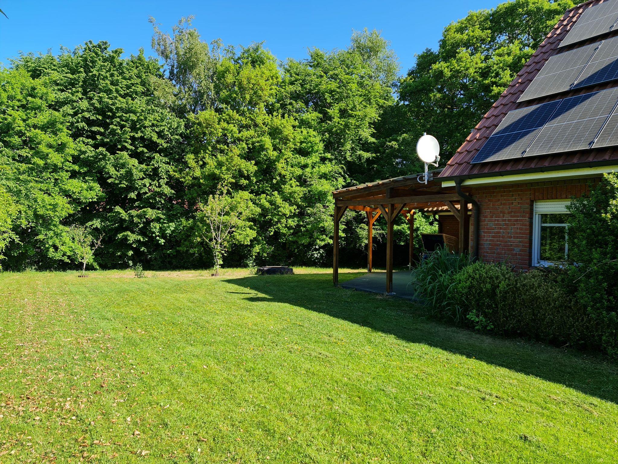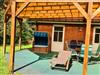 Der Garten und die überdachte Gartenterrasse, wo sich auch die Appartementeingangstür befindet, stehen Ihnen auch zur Verfügung. Auf der Terrasse befindet sich ein Tisch und gemütliche Sitzgelegenheiten.