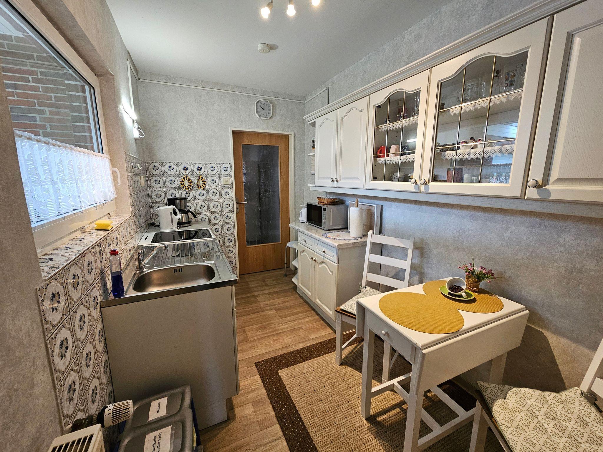 Gemütliche und komplett eingerichtete Ferienwohnung (im Erdgeschoss). Sie verfügt über einen separaten Eingang, eine überdachte Terrasse mit Gartenmöbel und Grillmöglichkeit. Von hier aus erreichen Sie gute Lauf- und Wanderwege direkt an der Moorroute. Das wohltuende Klima Ostfrieslands, die Ruhe und Natur, lässt den Alltag mit dem Stress zurück und Zeit zum durchatmen. Das Zentrum ist in wenigen Kilometern zu erreichen. Es steht eine E-Ladestation für Pkw zur Verfügung.
