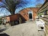 Gemütliches Ferienhäuschen Alte Schmiede in Uplengen mit Terrasse und Blick auf grüne Pferdewiesen.