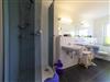 Das großzügige Bad verfügt über eine Badewanne mit Duschabgrenzung, WC und einem Haarföhn sowie zwei Waschbecken.