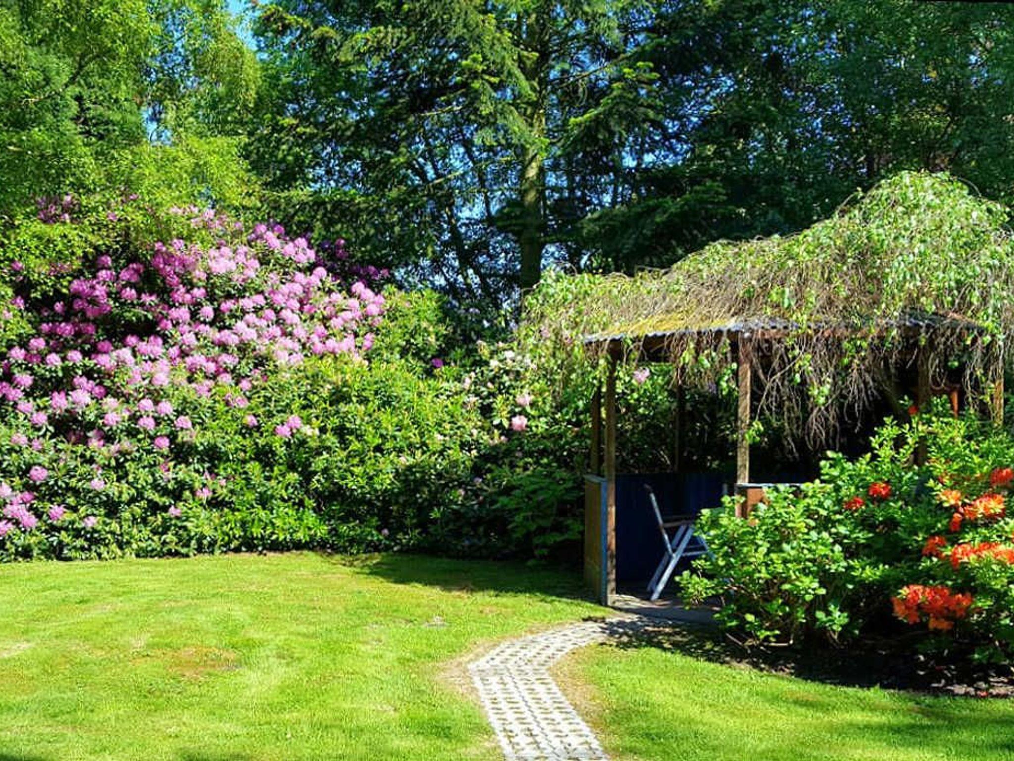 In unserem schönen großen Garten können Sie also auf den großen Liegewiesen die Sonne genießen und es sich am geschlossenen überdachten Holzpavillion sowie auf mehreren geschützten Außenterrassen je eine davon reserviert für Ihre jeweilige Ferienwohnung so richtig gut gehen lassen. Grillen kann man hier natürlich auch ganz hervorragend.