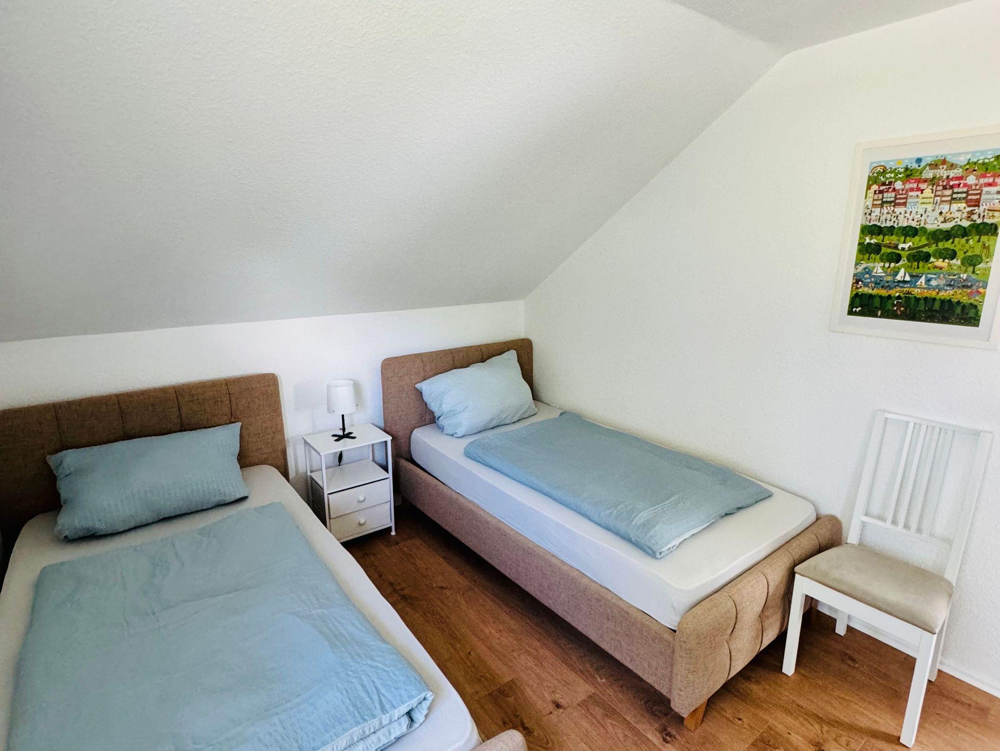 - im Obergeschoss 2 Schlafzimmer mit Doppelbett 1,80x2,00m und ein Schlafzimmer mit 2 Einzelbetten je 1,00x2,00m