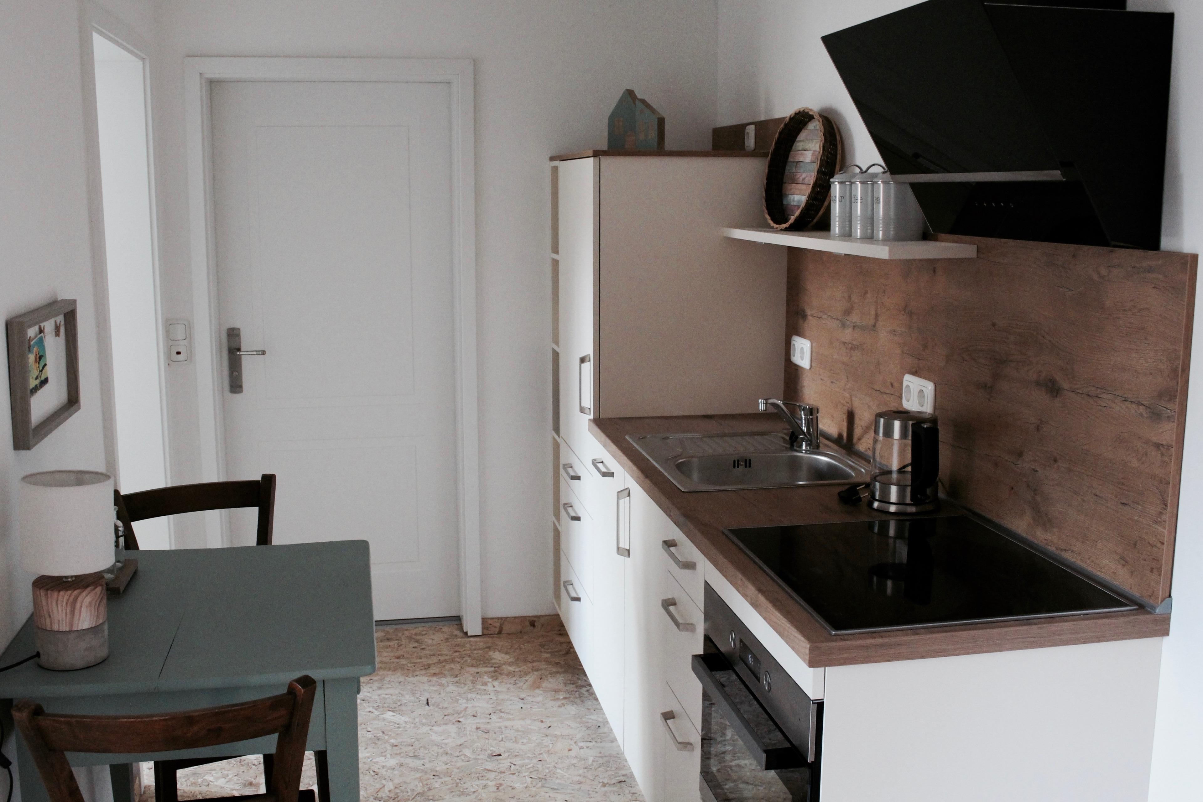 Das Ferienappartement Karl bietet Platz für zwei Personen. Es befindet sich im 1. Obergeschoss des Landhauses Weserbergland und verfügt über eine Küche mit Essbereich, ein Schlafzimmer, Wohnzimmer und Badezimmer mit Dusche.