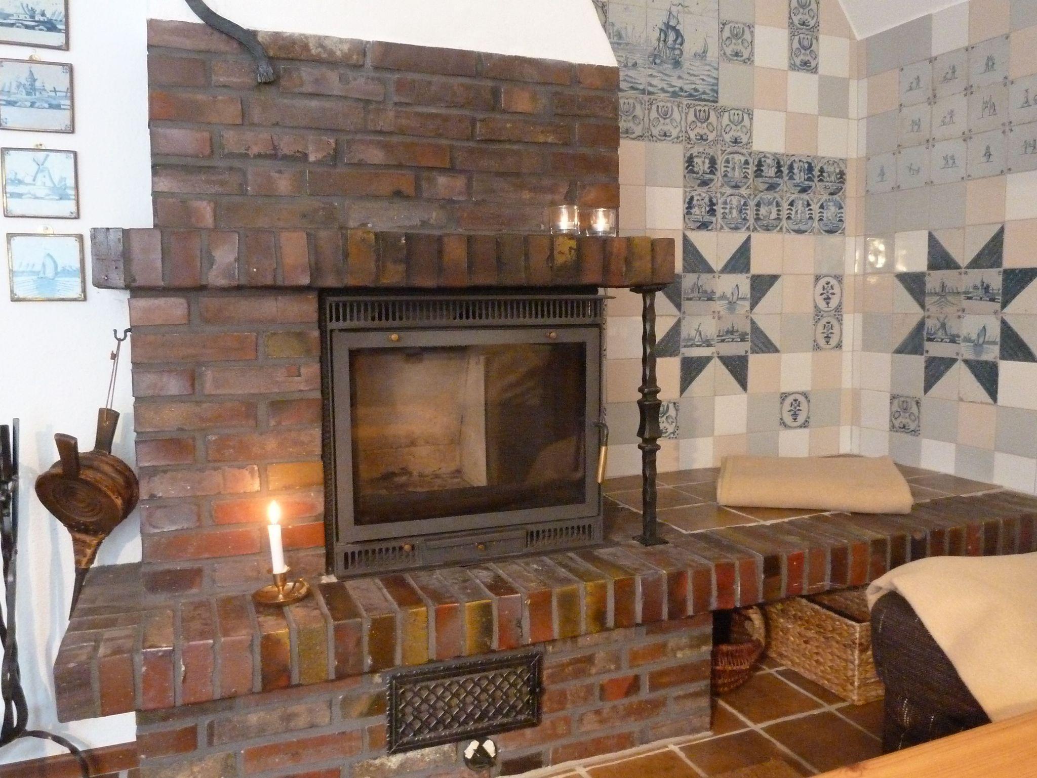 • Kamin im Wohnzimmer, Kaminecke mit original Delfter Fliesen verziert