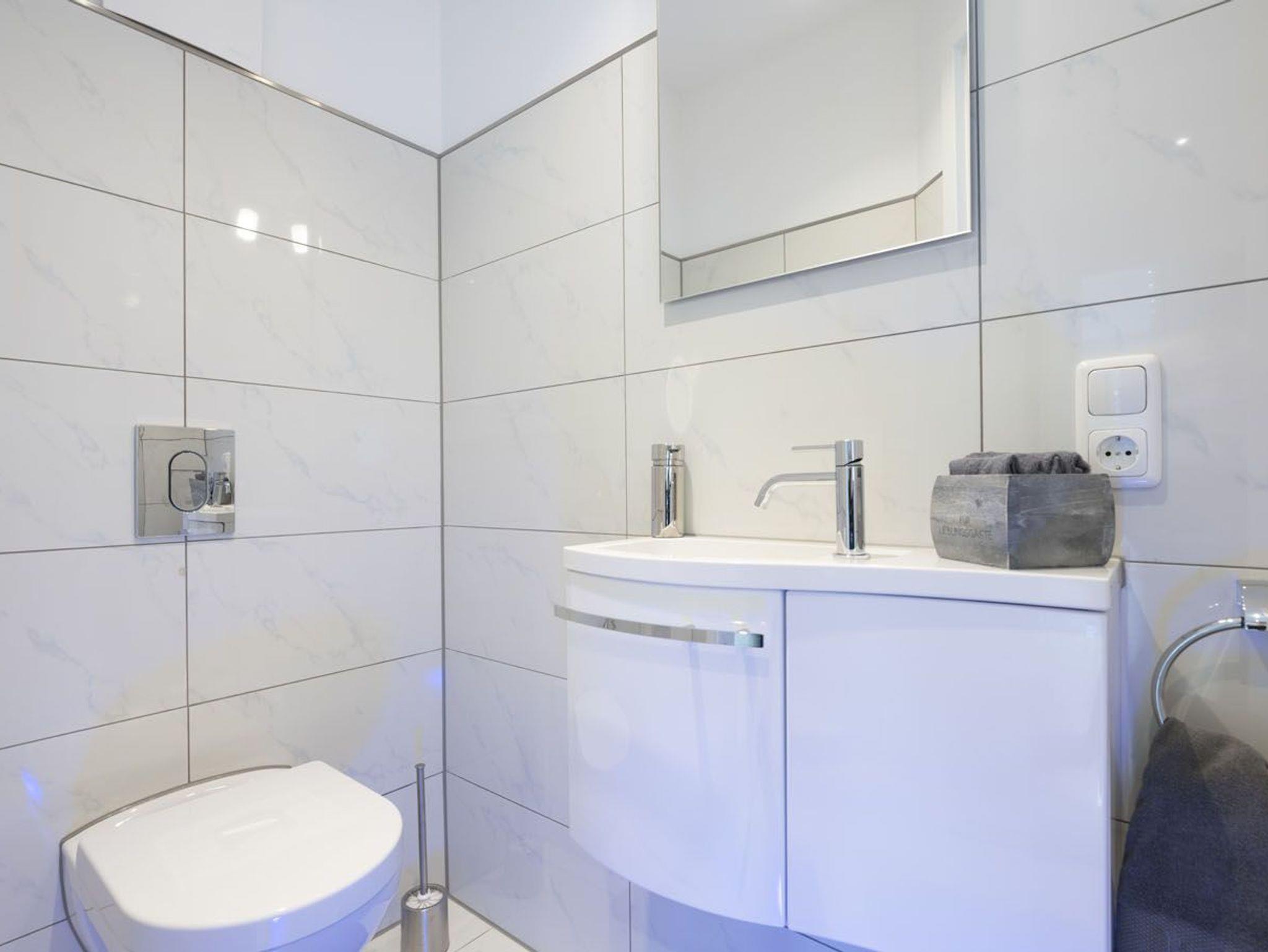 In dieser schicken Neubauwohnung mit Stellplatz vor dem Haus in der Störtebekerstr. 8 werden Sie sich sofort wohlfühlen. Vom großzügigen Dielenbereich mit Garderobe und Gäste-WC gelangen Sie ins moderne Wohnzimmer mit Gas-Kamin und integrierter Küchenzeile mit Essbereich. Die Küche ist hochwertig und komplett ausgestattet. Unsere zwei Schlafräume haben Doppelbetten und große Kleiderschränke. Ein modernes, helles Fenster-Bad mit Badewanne und Dusche sorgt für entspannte Momente. Ab Wohnzimmer gelangen Sie auf die möblierte großzügige Terrasse mit anschließendem weitläufigen Rasengrundstück.