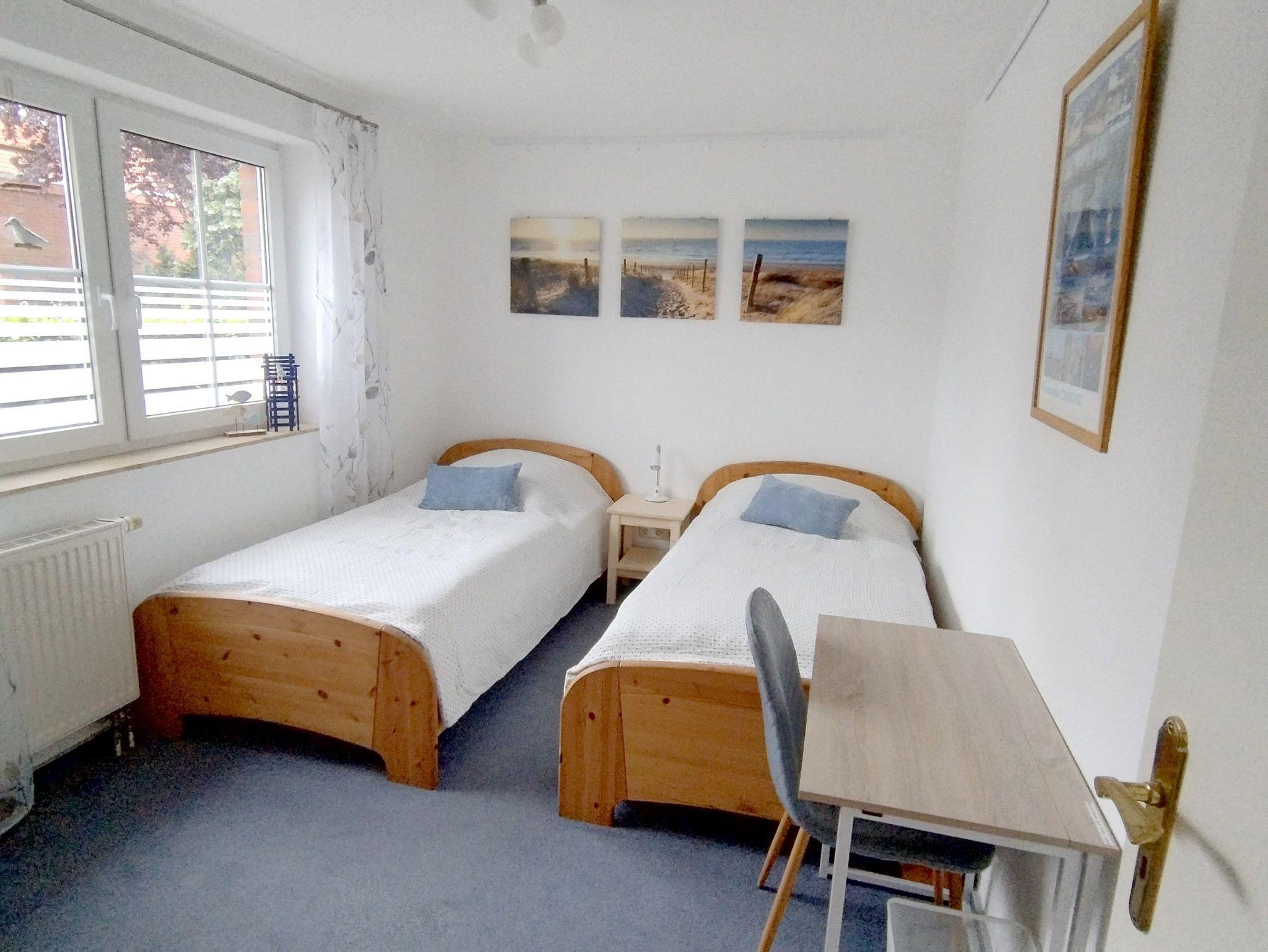 zwei Schlafzimmer (1 x Doppelbett, 2 x Enzelbett, kleiner Schreibtisch)