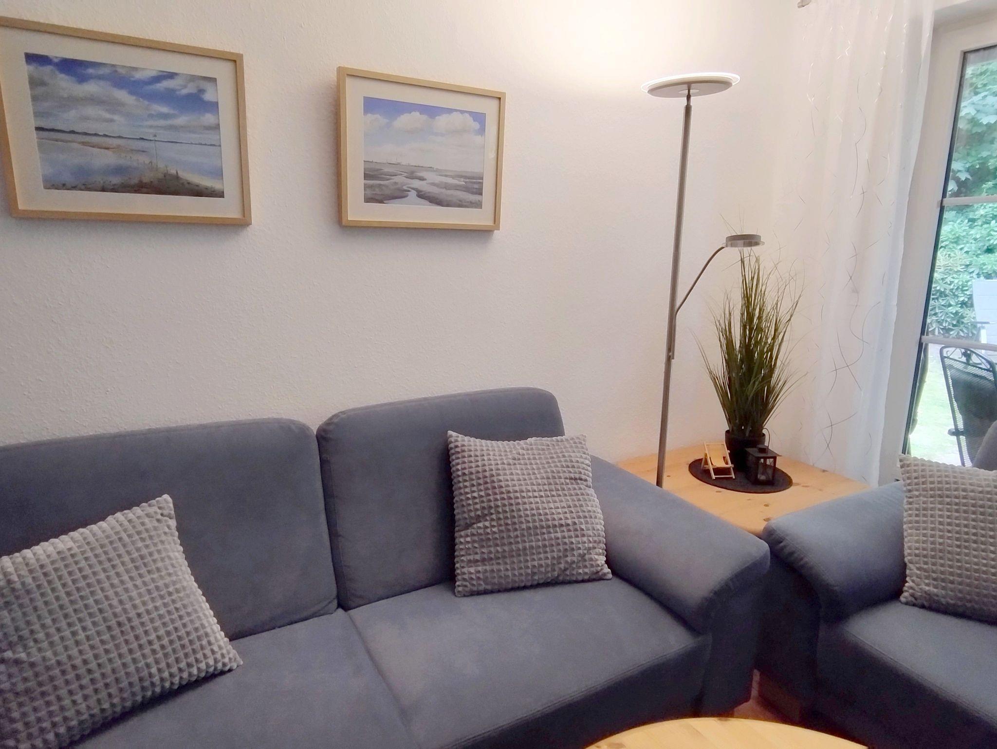 Moderne Erdgeschosswohnung Silbermöwe in Varel-Dangast mit Garten, WLAN und zwei Parkplätzen, ideal für entspannte Urlaubstage am Meer.
