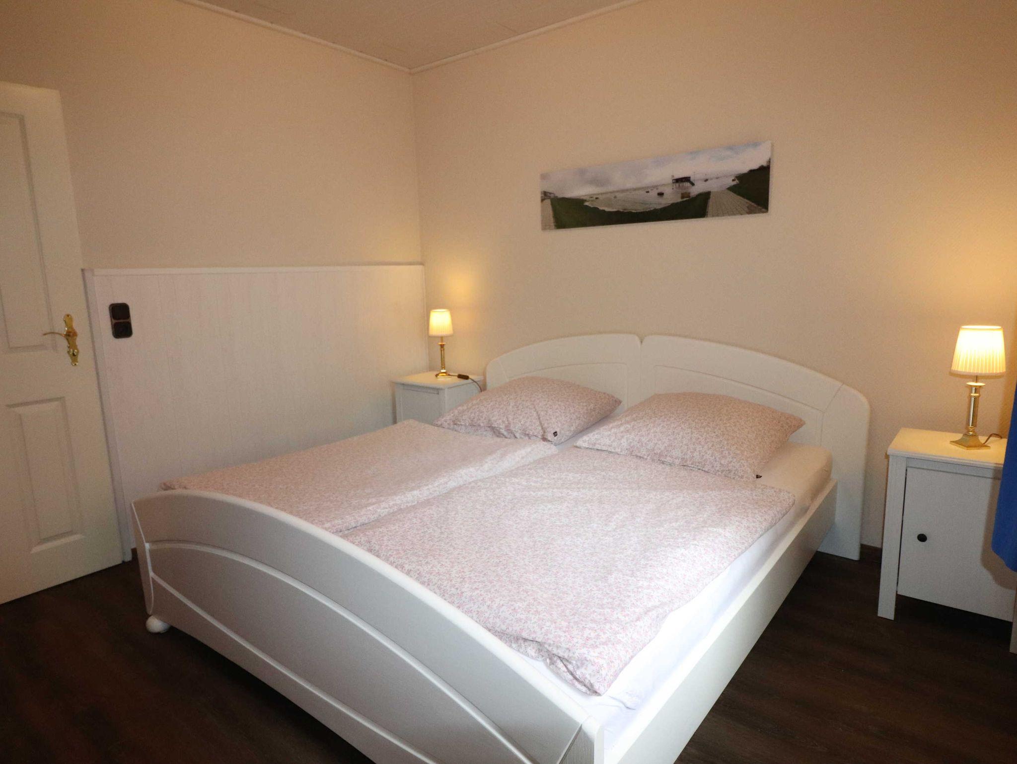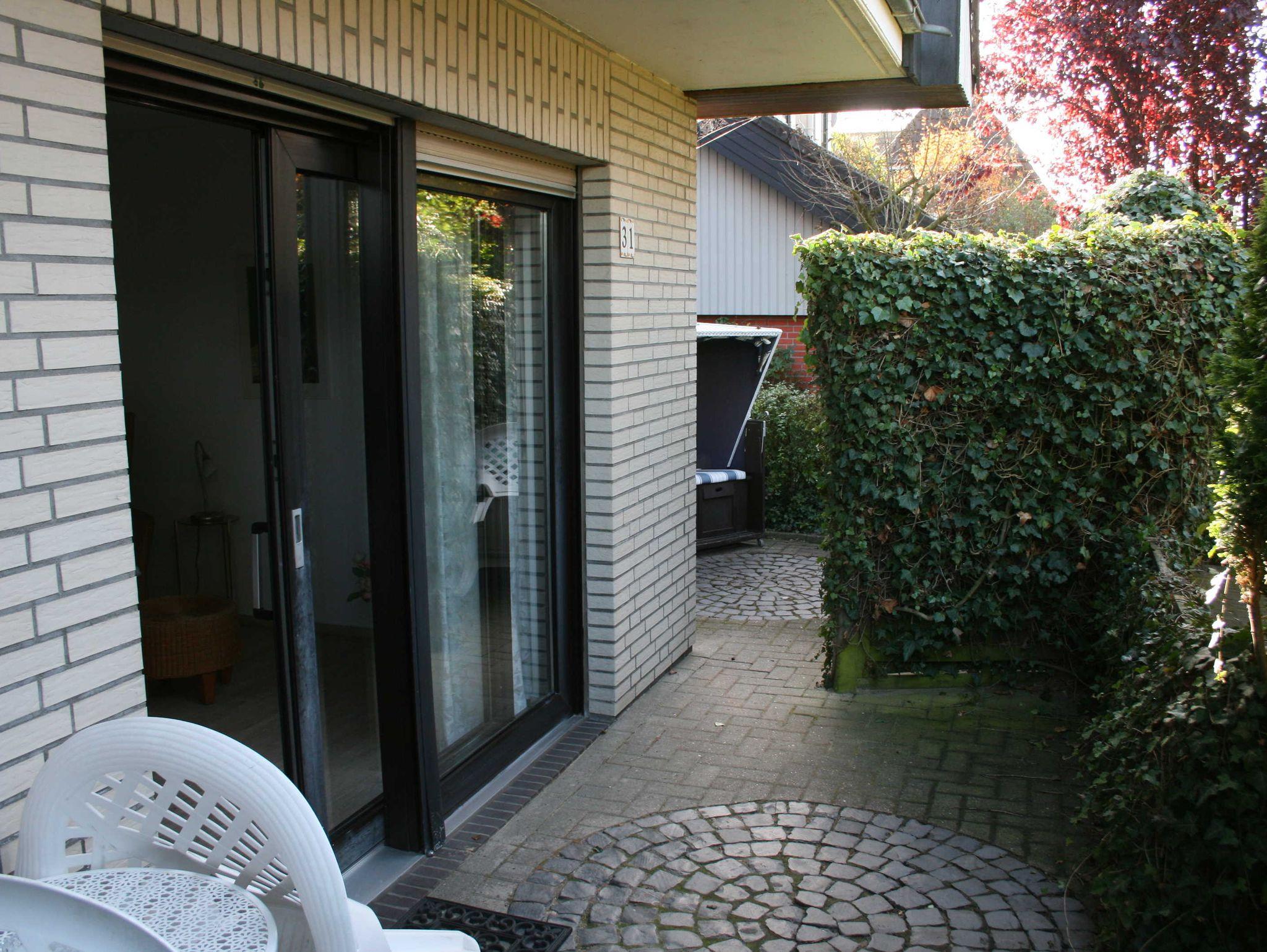 Im Erdgeschoss unseres Hauses vermieten wir zwei Ferienwohnungen, jeweils ca. 50m² groß. Unsere Wohnung im Erdgeschoss rechts verfügt über eine moderne technische Ausstattung, neben einem Radio mit CD-Laufwerk steht Ihnen ein moderner Flachbildfernseher mit Satellitenempfang zur Verfügung. Die voll ausgestattete Küche bietet neben einer Mikrowelle, einem Kühlschrank und einer Kaffeemaschine auch einen Geschirrspüler, so dass Sie in Ihrem Urlaub auf keinen Komfort verzichten müssen. Die Wohnung ist barrierefrei, wenn auch nicht behindertengerecht ausgestattet -bei Fragen sprechen Sie uns gerne an! Für weitere Gäste lässt sich das Sofa im Wohnzimmer zu einem vollwertigen Doppelbett ausklappen, so dass insgesamt bis zu vier Personen in unserer Parterrewohnung Platz finden. Darüber hinus verfügt die Wohnung über eine großzügige Südterasse, ausgestattet mit entsprechender Möblierung inklusive eines Strandkorbes. In der Wohnung gibt es neben dem Wohn-/Esszimmer mit Küchenzeile ein Schlafzimmer mit Doppelbett, sowie ein Duschbadezimmer.
