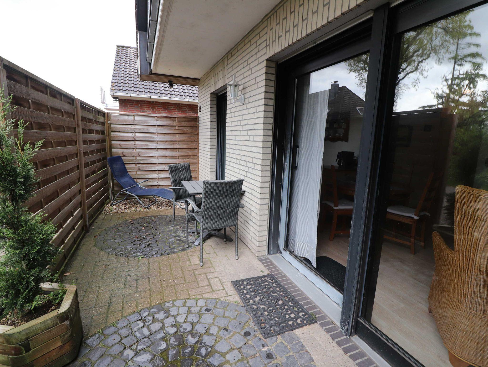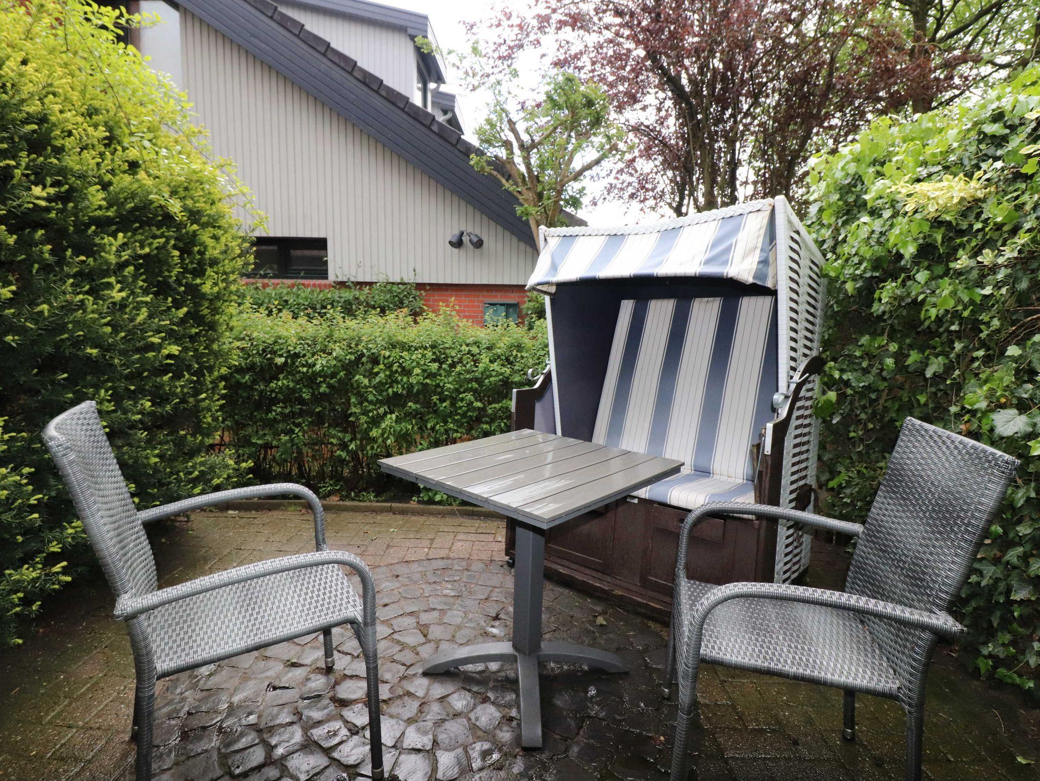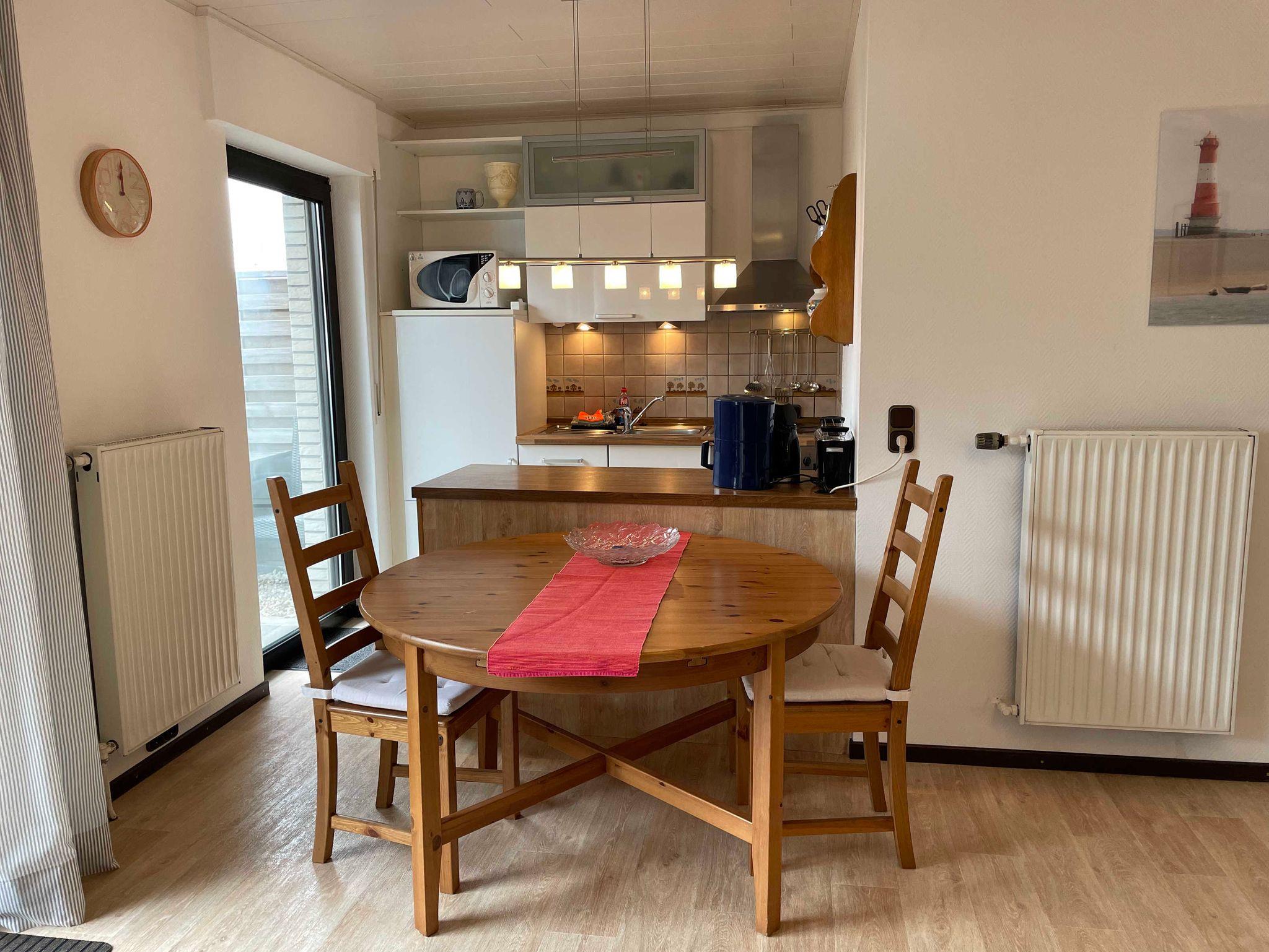 Die Wohnung verfügt über eine großzügige Südterasse, ausgestattet mit entsprechender Möblierung inklusive eines Strandkorbes. In der Wohnung gibt es neben dem Wohn-/Esszimmer mit Küchenzeile ein Schlafzimmer mit Doppelbett, sowie ein Duschbadezimmer.