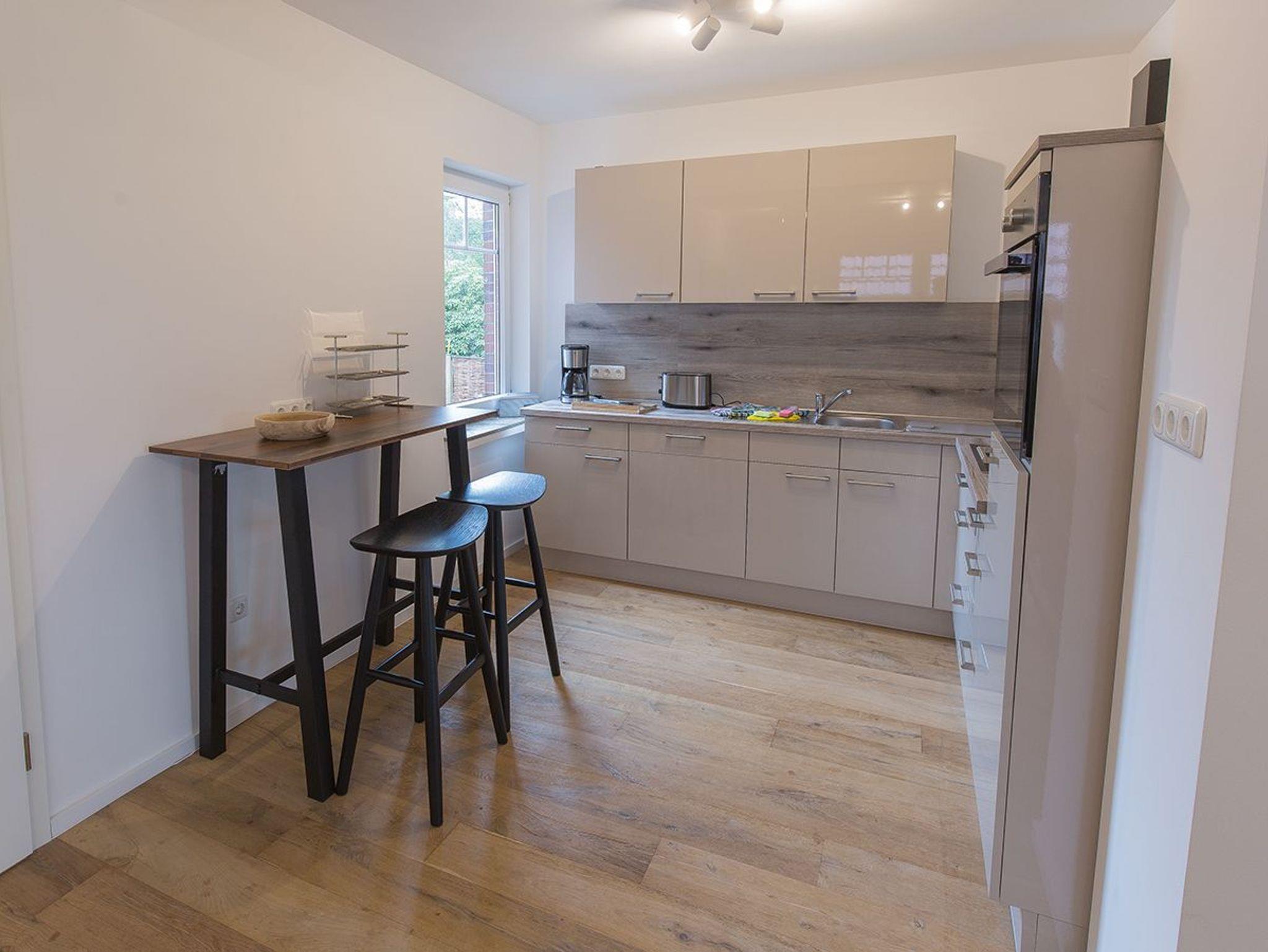 Ferienwohnung Fresenhuus 1 in Dangast: Gemütlich, modern und mit Sauna im Grünen.