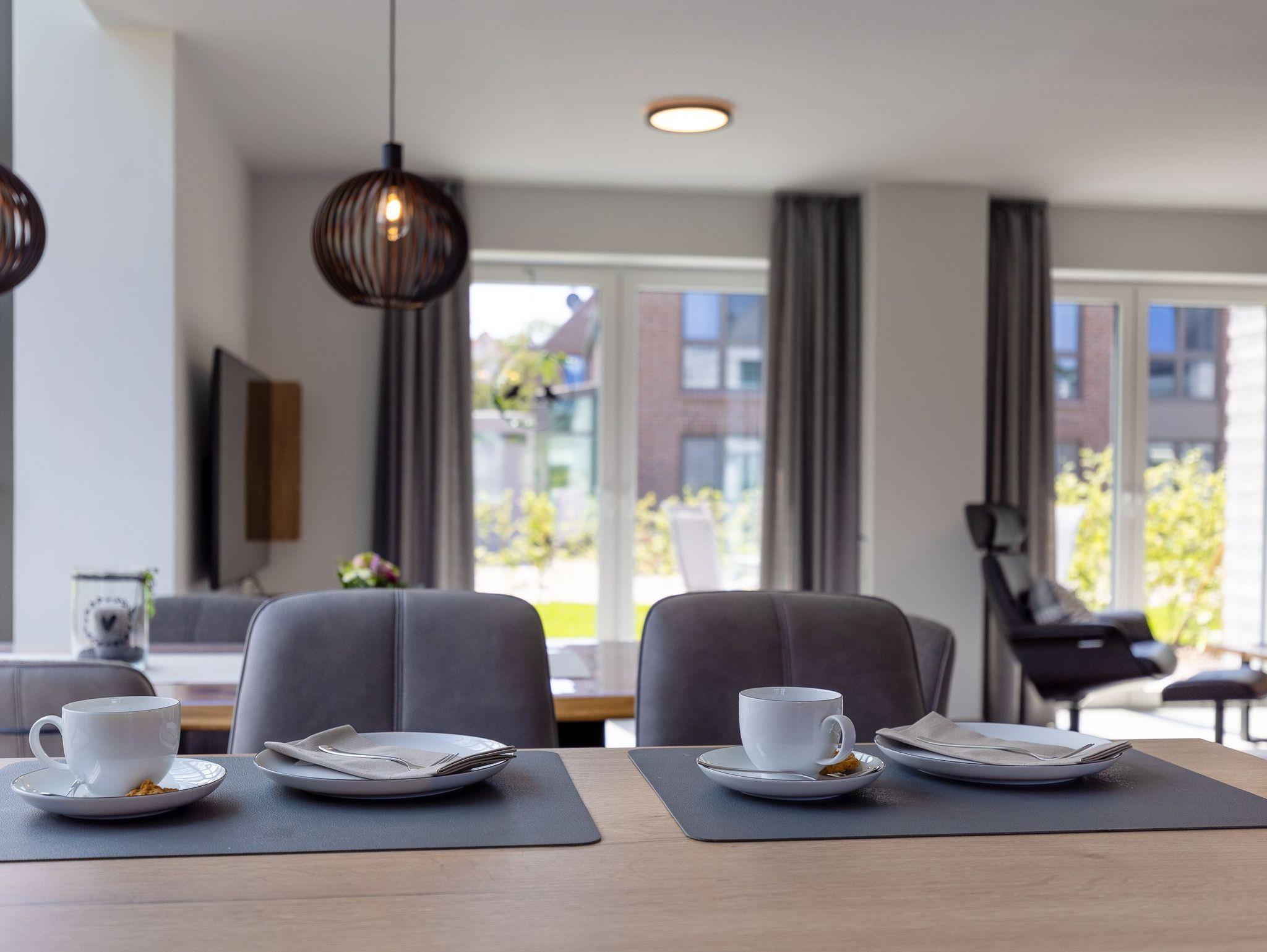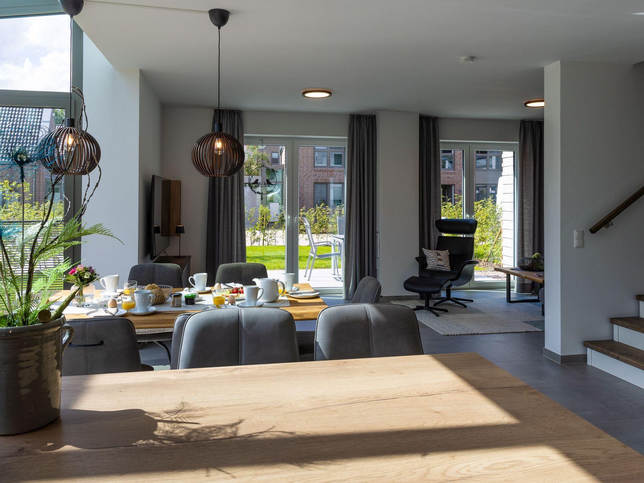 Modernes, kinderfreundliches Ferienhaus Liegeplatz Dangast mit Wintergarten, Terrasse und traumhaftem Ausblick in ruhiger Lage.