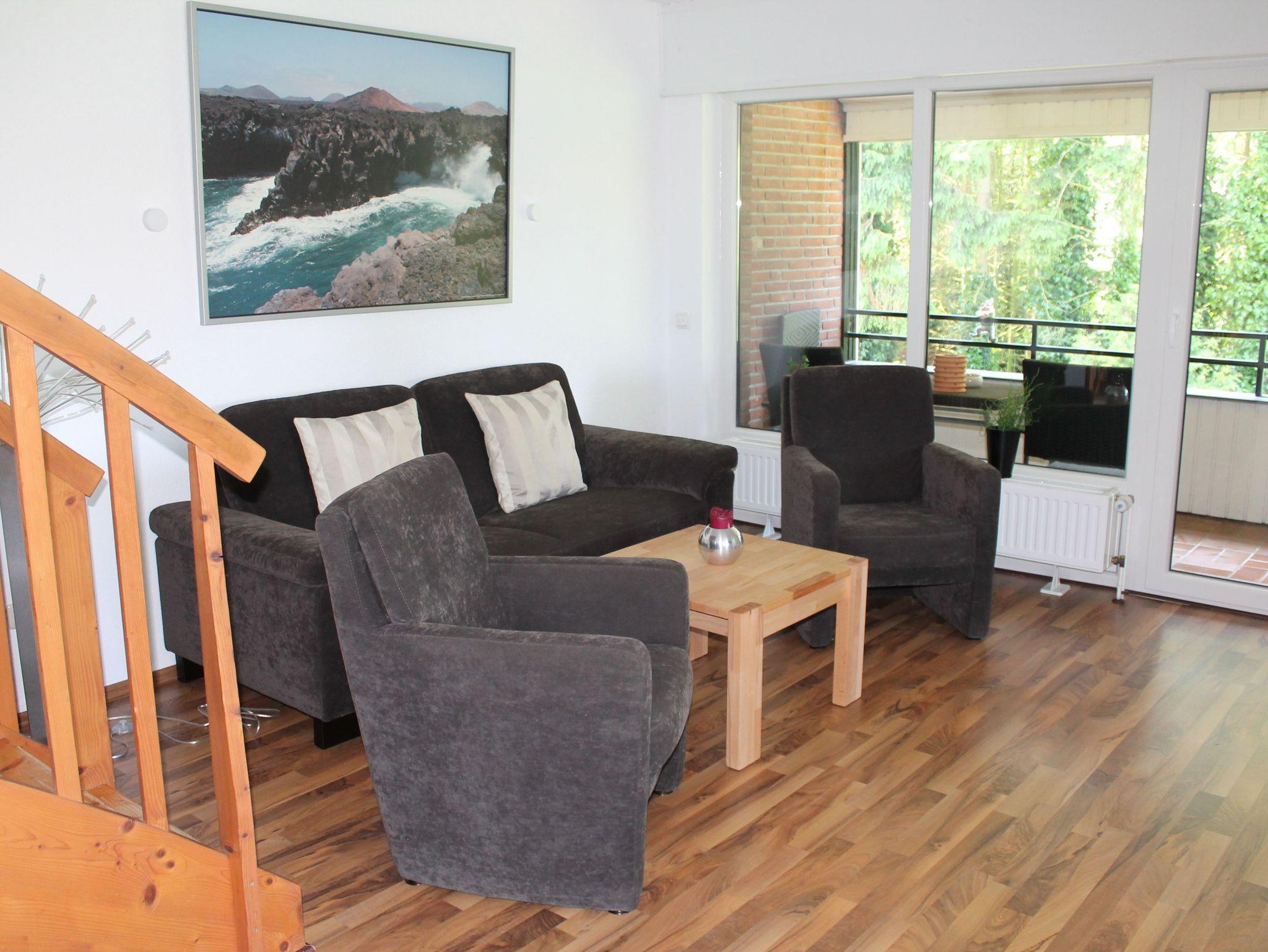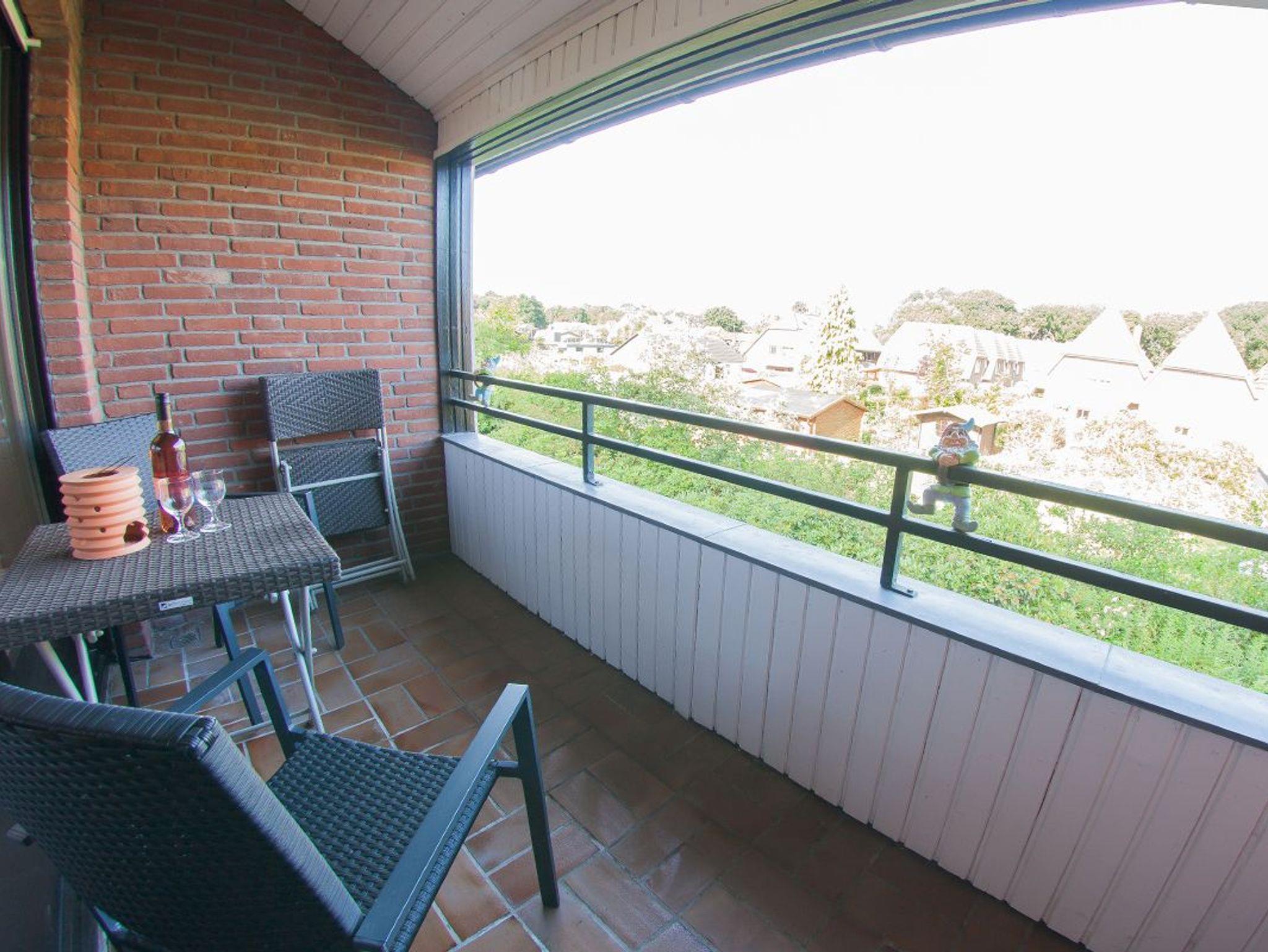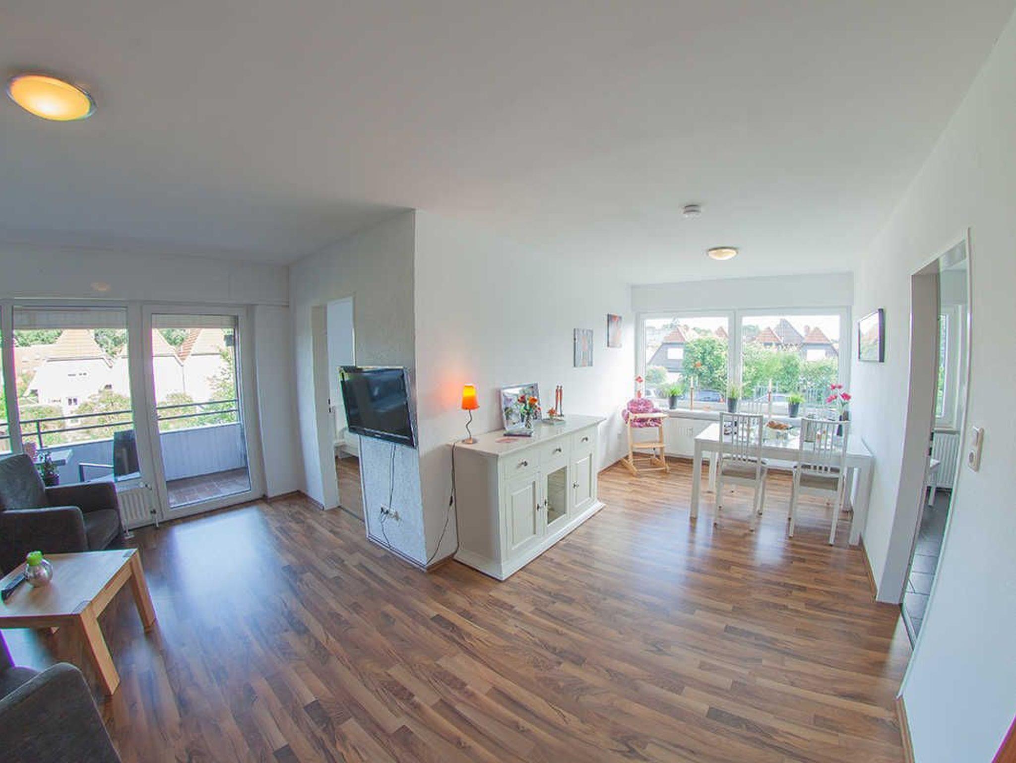 Das Acht-Parteienhaus Hollwert 8 befindet sich in einem reinen Wohngebiet ruhig gelegen circa 400 Meter vom Kurhausstrand. Hier erwartet Sie im erste Obergeschoss die geschmackvoll eingerichtete Ferienwohnung Nordseeluft ihre Gäste. Im großzügigen Eingangsbereich mit Garderobe befindet sich links das moderne Duschbad. Geradeaus weiter geht es in den Wohn/Essbereich mit wandhängendem TV, einer komplett ausgestatteten separaten Küche sowie dem Doppelschlafraum - mit Rollläden versehen. Über eine Holztreppe erreichen Sie das großzügig ausgebaute, möblierte Dachstudio mit zwei Einzelbetten und Ausstattung für Kinder/Jugendliche. Achtung: das Dachfenster hat keine Verdunklungsmöglichkeit! Ein schöner Balkon zur Süd-Westseite mit Mobiliar ist ebenfalls vorhanden.
