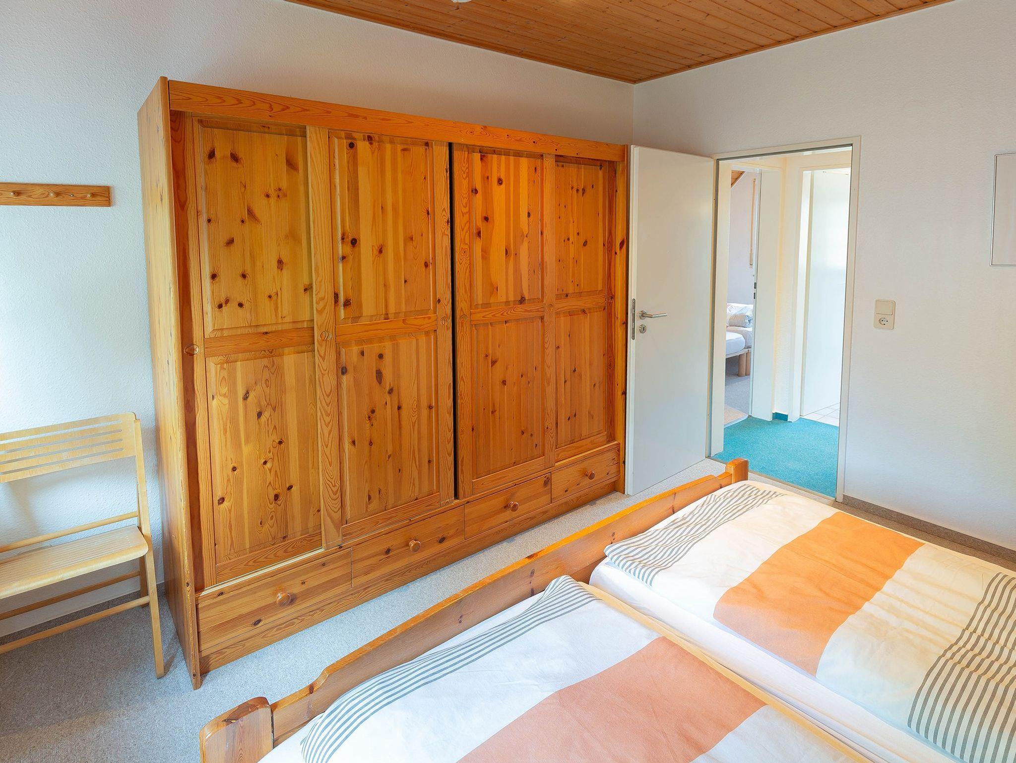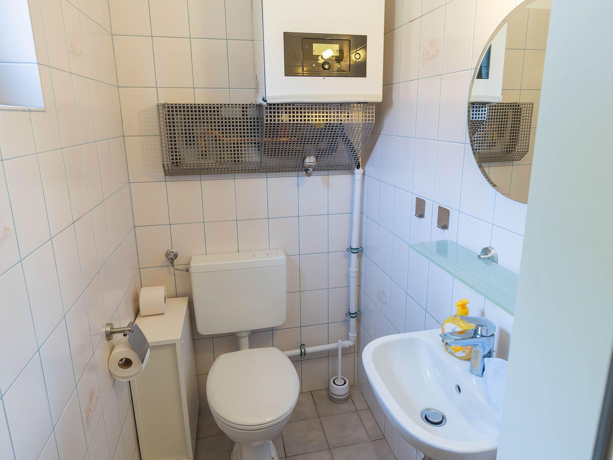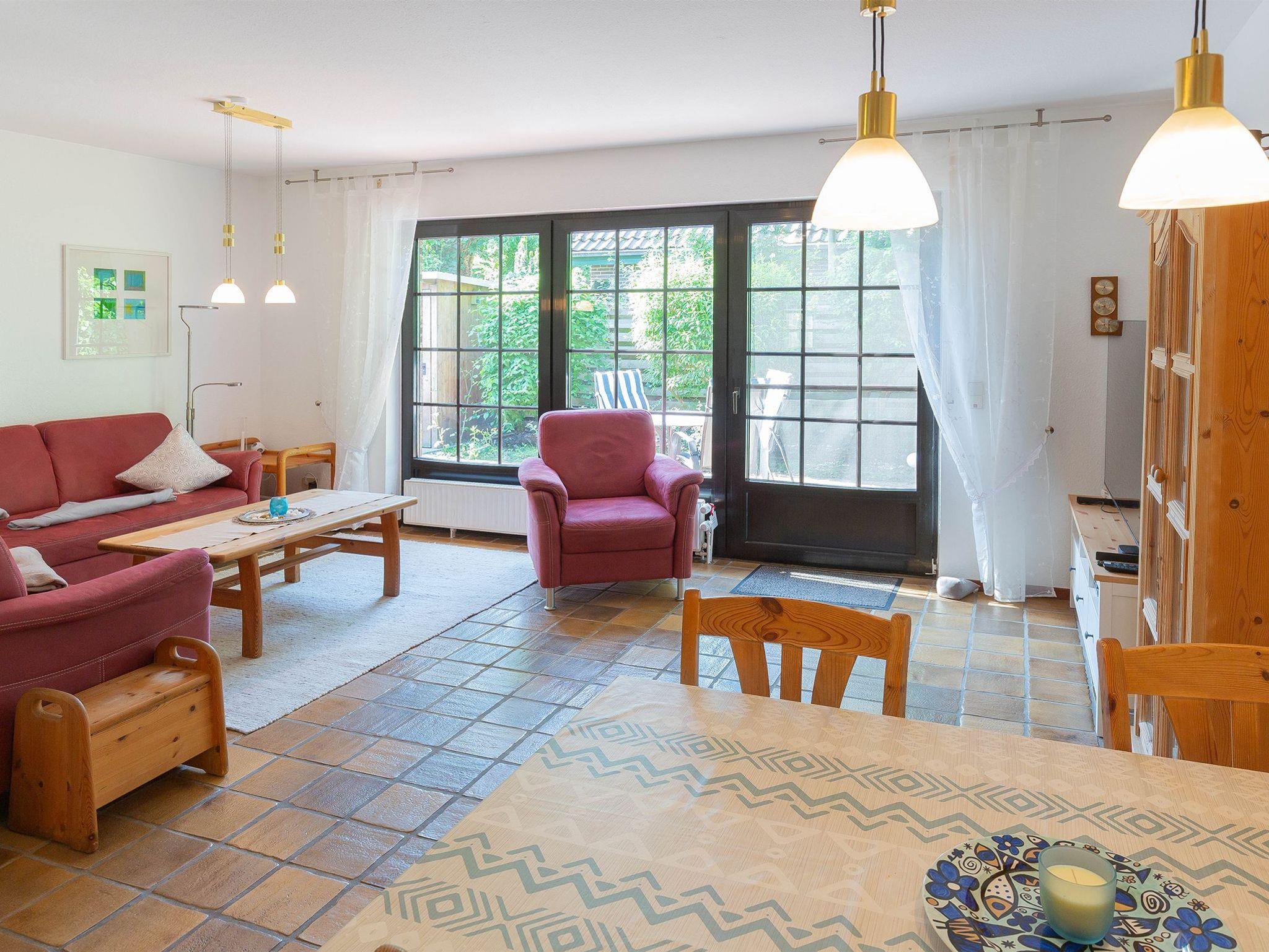 Sie betreten das Ferienhaus durch den Windfang mit Gäste-WC und Garderobe und gelangen in einen großzügigen Wohn- und Essbereich mit offener schicker Küchenzeile, die alles an Ausstattung für ein entspanntes Kochen bietet. Der Wohnbereich hat Kachelboden mit Fußbodenheizung. Hier ist auch der Ausgang zur großen Südterrasse. Im Obergeschoss befinden sich drei Schlafräume sowie das helle Fenster-Duschbad mit Waschmaschine. Ihre Fahrräder können Sie im dafür vorgesehenen Abstellraum am Gebäude sicher unterstellen.