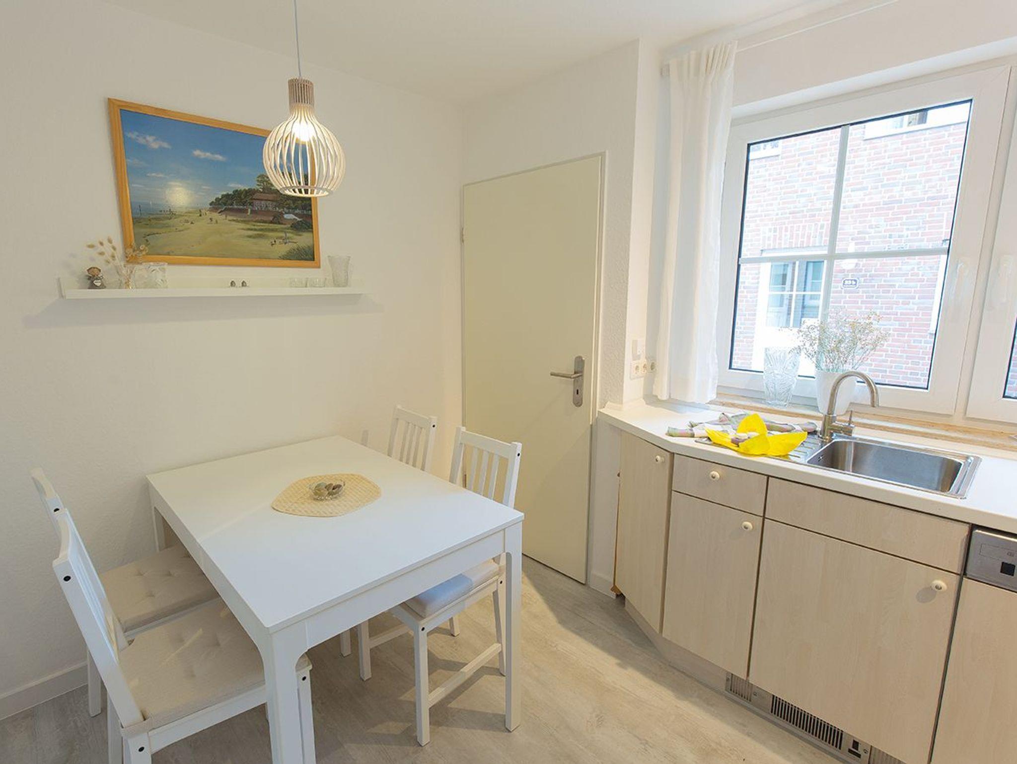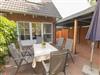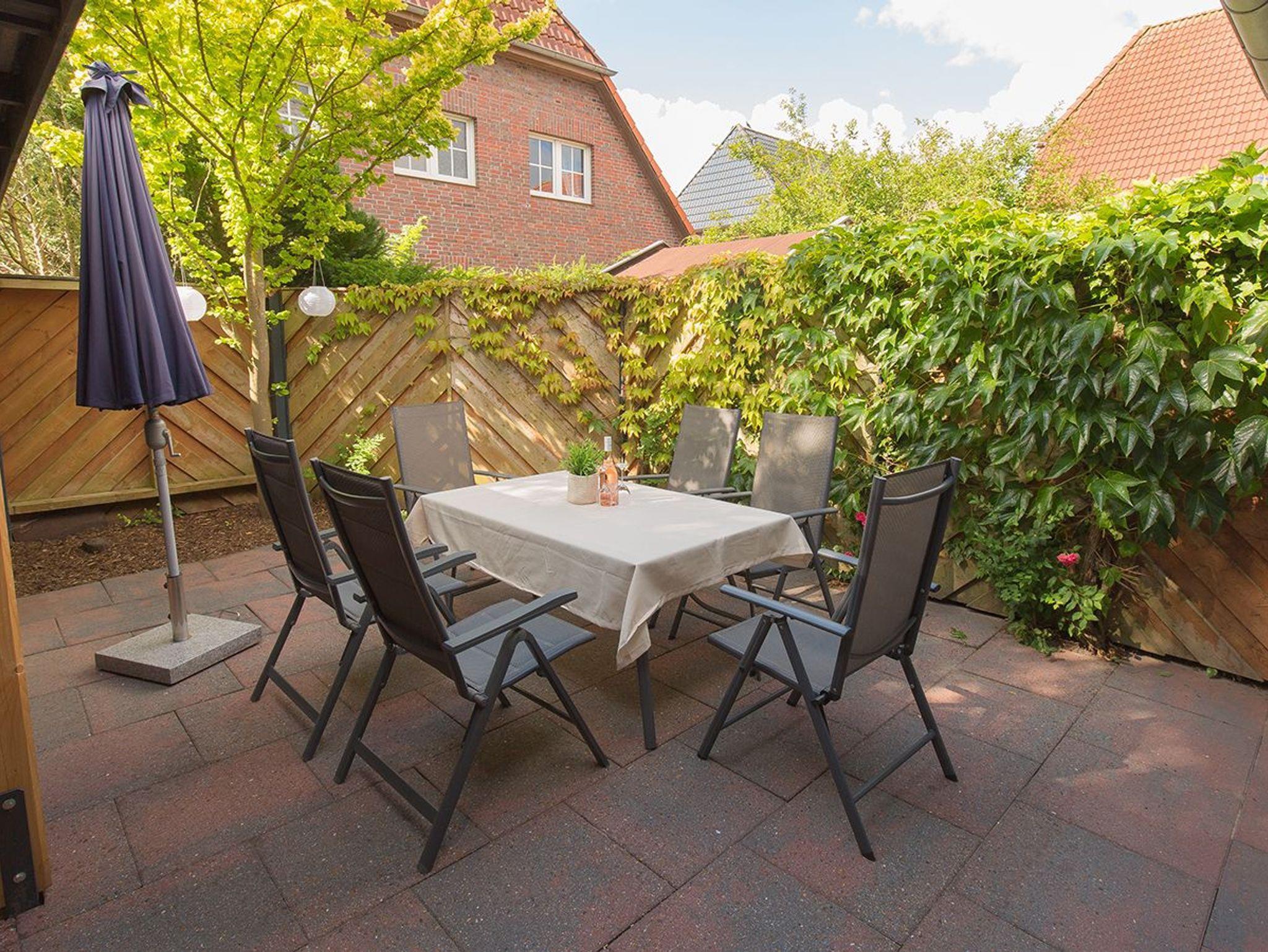 Von der Haustür aus gelangen Sie in einen kleinen Flur, wo Schuhe und Jacken schnell verstaut werden können. Hier befindet sich auch das Gäste-WC. Die gemütlich eingerichtete Küche bietet genügend Platz zum Klönen und Kochen und hat alles, um den Urlaub genießen zu können. Vom geräumigen Wohnzimmer haben Sie die Möglichkeit, auf der großen Terrasse zu entspannen. Die dortige Goldulme ist ein zusätzlicher Blickfang. Der angrenzende große Dachunterstand bietet zudem viel Platz für z.B. Fahrräder oder einfach für einen Aufenthalt im Schatten (oder um bei Schietwetter im Freien zu sitzen).