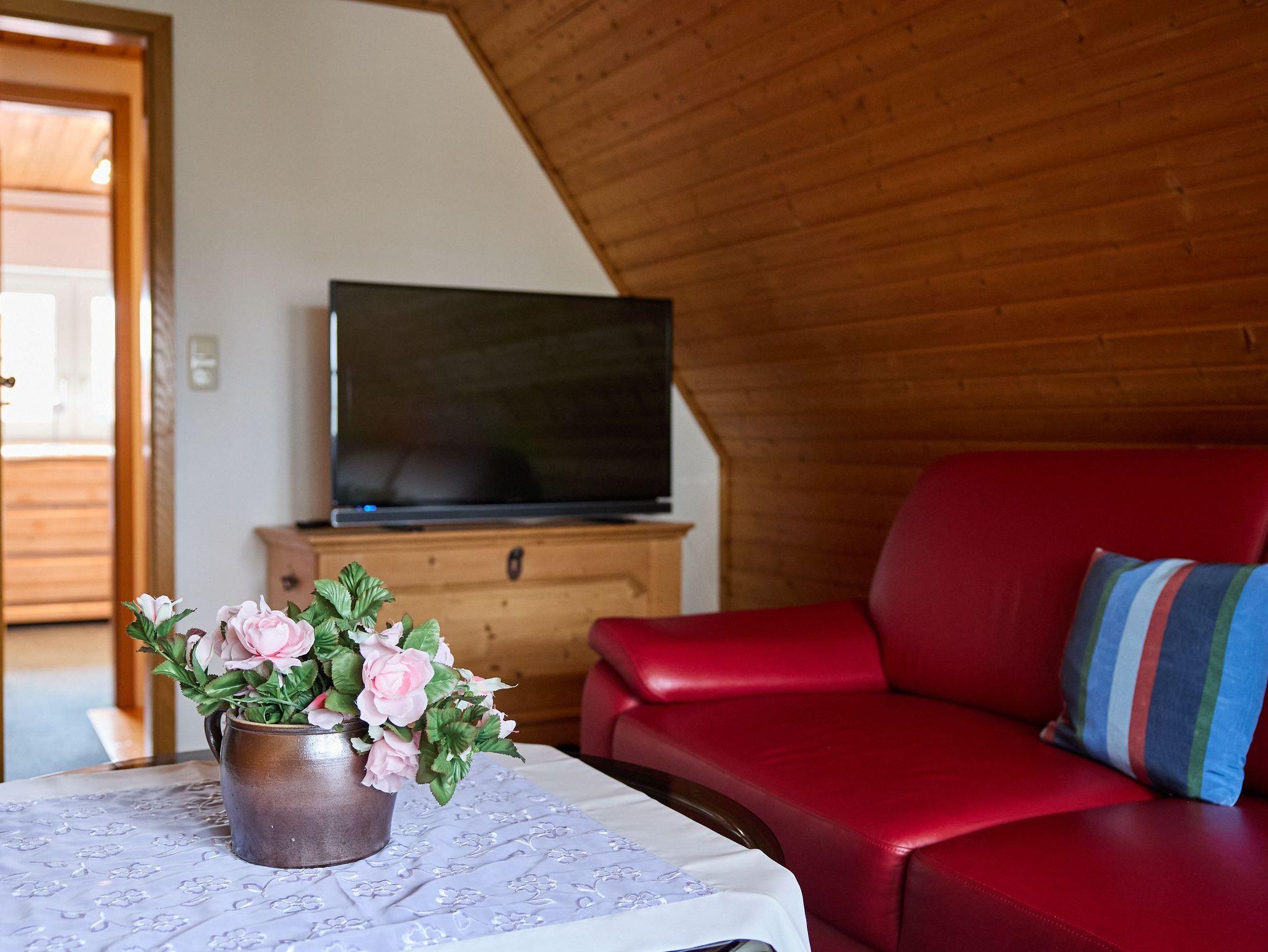 ein weiteres Wohnzimmer im Dachgeschoss mit Fernseher