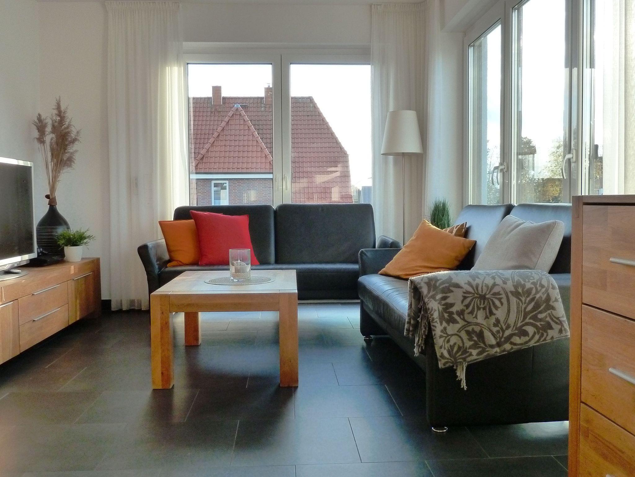 Luxuriöses Penthouse in Dangast mit Meerblick, Kamin und moderner Ausstattung für entspannte Urlaubstage.