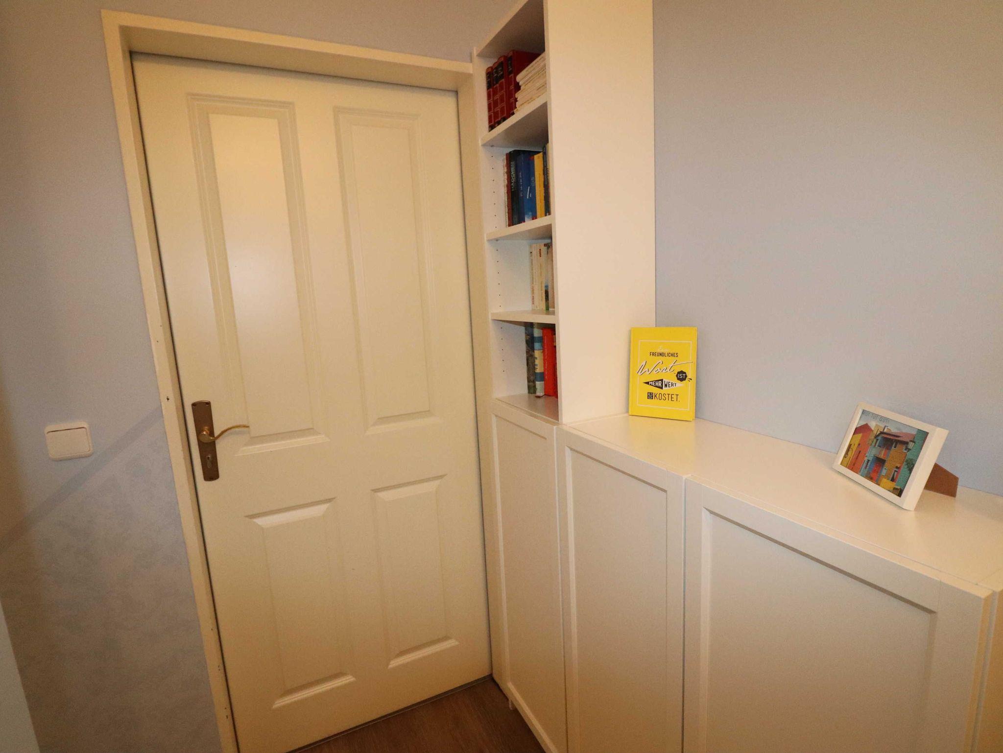 Unsere Wohnung im Obergeschoss links ist ca. 39m² groß. Aus dem Dachfenster im Küchenbereich haben Sie den Jadebusen im