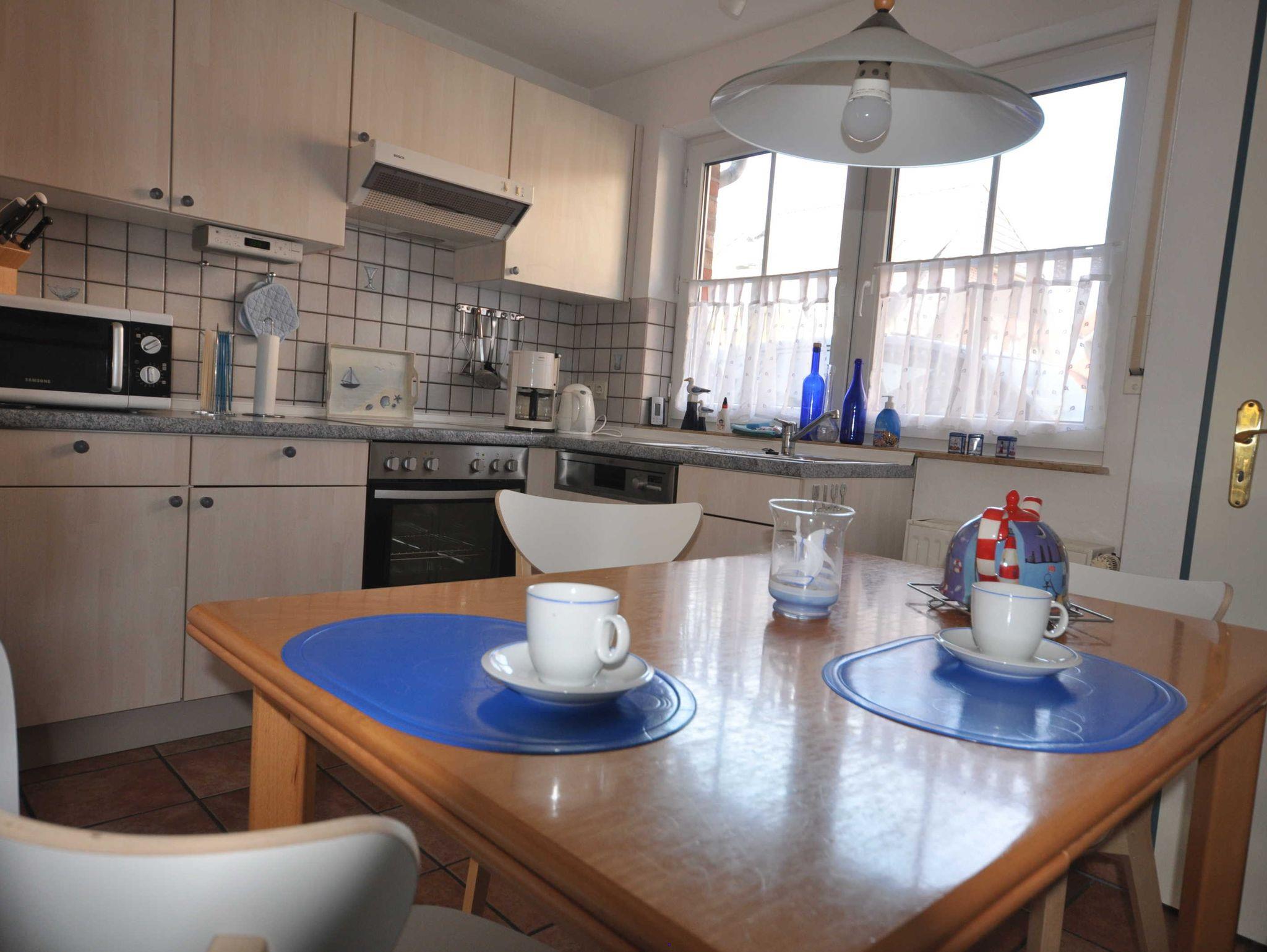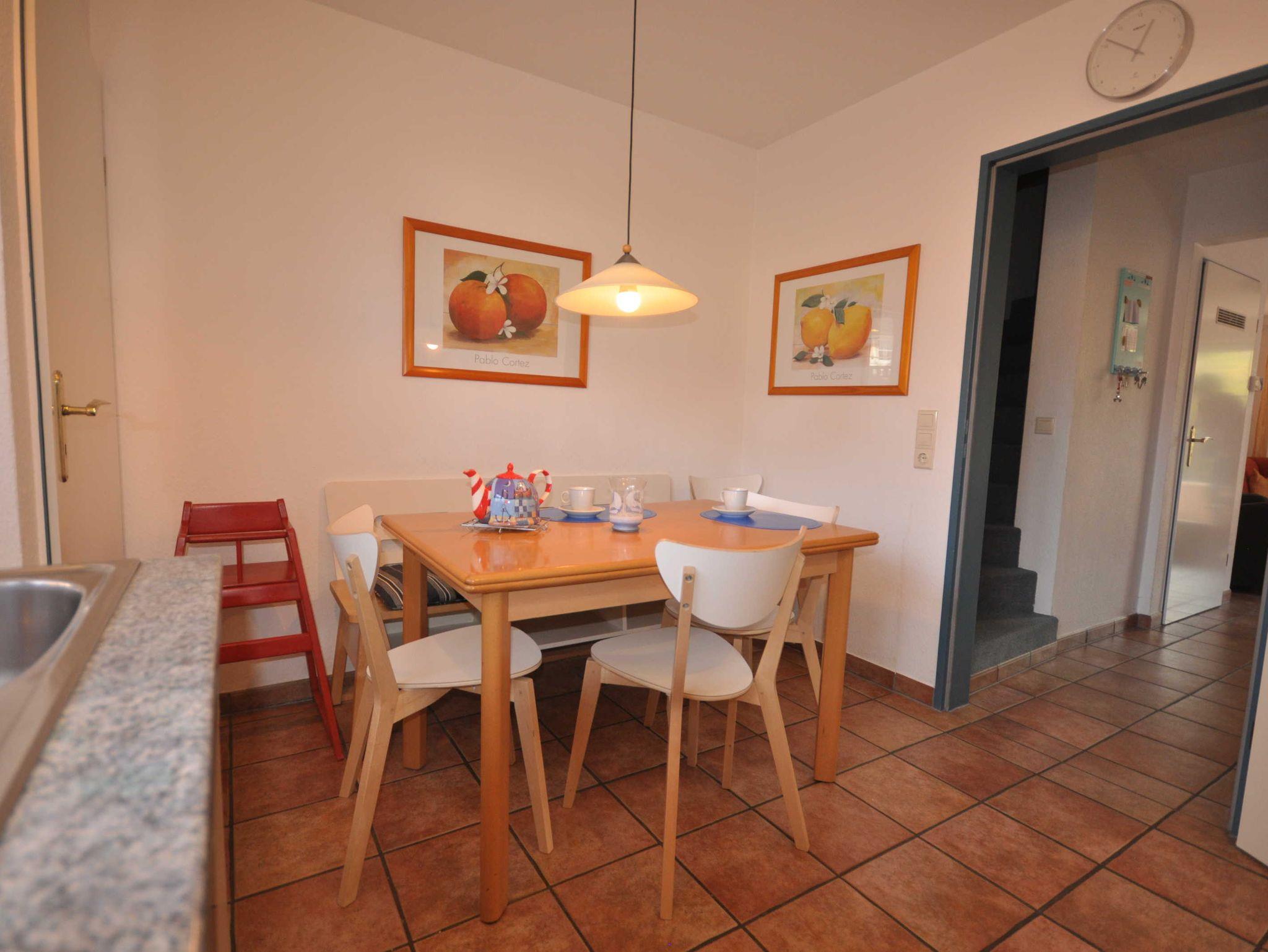 Haus Jade ist ein liebevoll eingerichtete Reihenendhaus über 3 Etagen. Im Erdgeschoss befindet sich die komplett eingerichtete, abgeschlossene Küche mit Essplatz, (Geschirrspüler, Backofen, Kühlschrank mit Gefrierfach usw.), ein Gäste-WC mit Fenster, ein kleiner Flur mit Garderobe und das große Wohnzimmer mit Zugang zur abgeschlossenen möblierten Südterrasse. Im ersten Stock wartet ein Schlafzimmer mit Doppelbett, ein Zimmer mit 2 Einzelbetten sowie dazwischen das Duschbad mit Waschmaschine und Haartrockner. Ein zusätzliches Zimmer mit zwei Einzelbetten, Sitzgelegenheit und kleinem Tisch für Gesellschaftsspiele usw. befindet sich im Dachgeschoss. Reisebettchen und Hochstuhl sind vorhanden. SAT-TV, WLAN, Telefon, Stereoanlage lassen keinen Komfort vermissen.